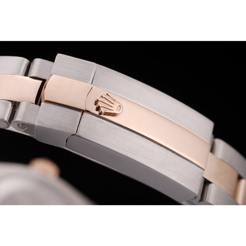 Bracelet:18k or rose plaqué et brossé bracelet à maillons en acier inoxydable avec boucle déployante logo Rolex