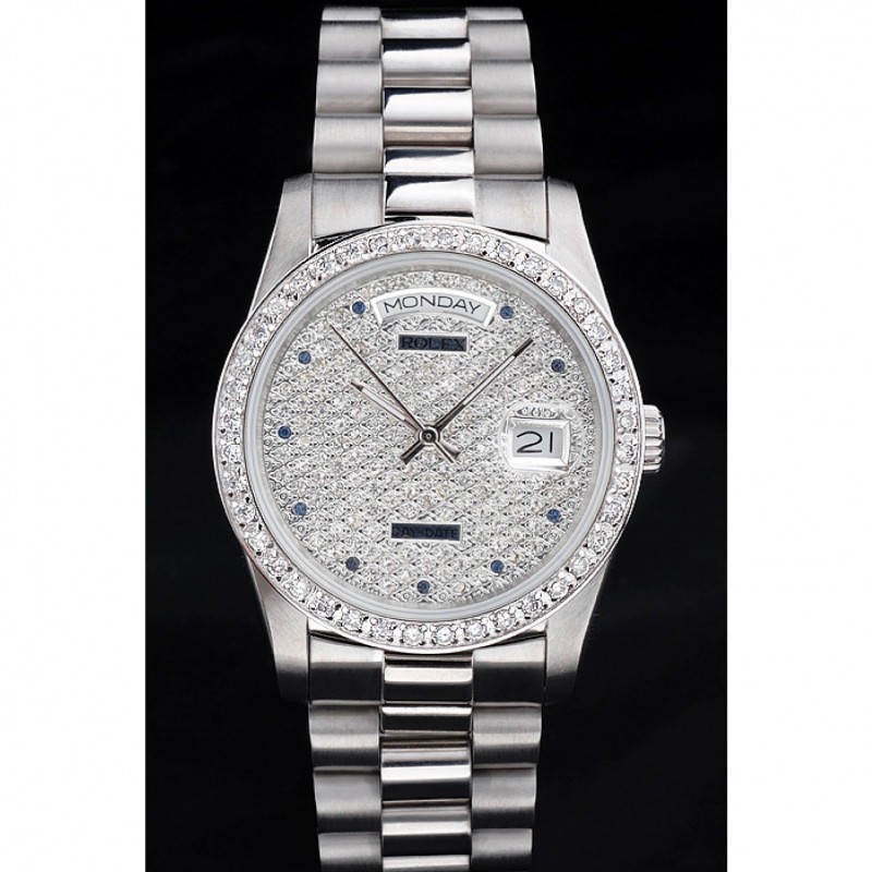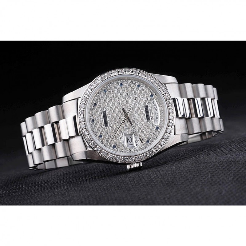 Bezel:lunette en acier inoxydable poli avec des marqueurs d’heure stud cristal