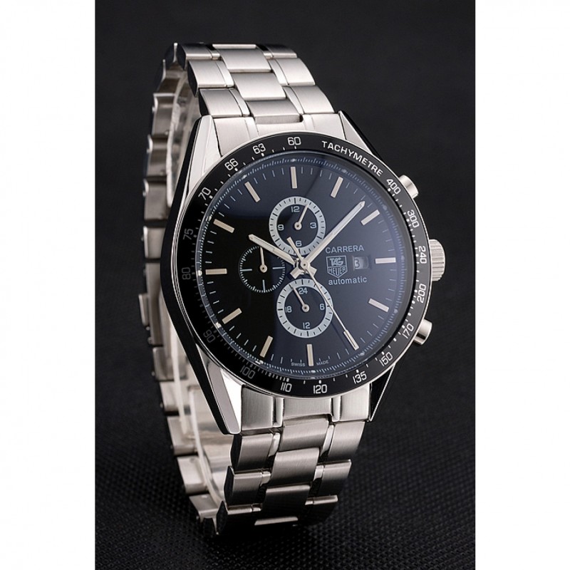 lunette:lunette en acier inoxydable brossé avec tachymètre émaillé noir