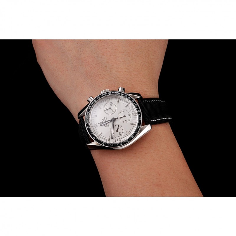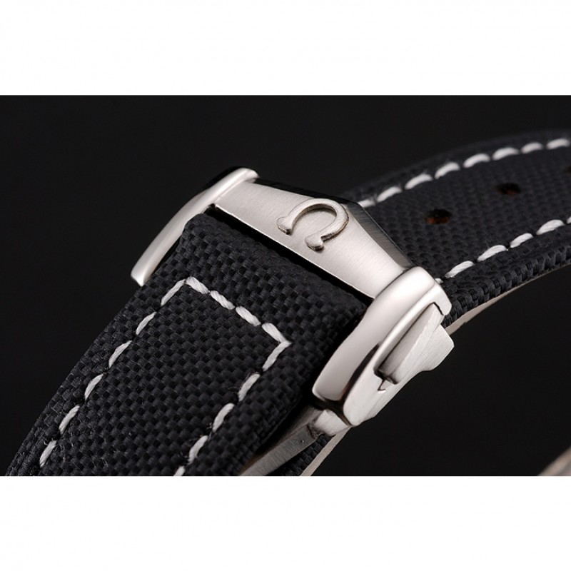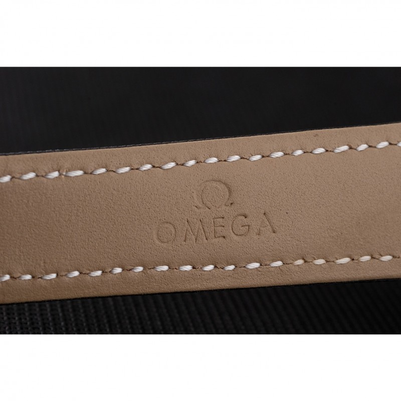 Bracelet:logo et la chaleur Omega gaufrés bracelet en cuir texturé noir avec coutures de fil blanc et Omega logo gravé en acier inoxydable poli fermoir crochet push-presse