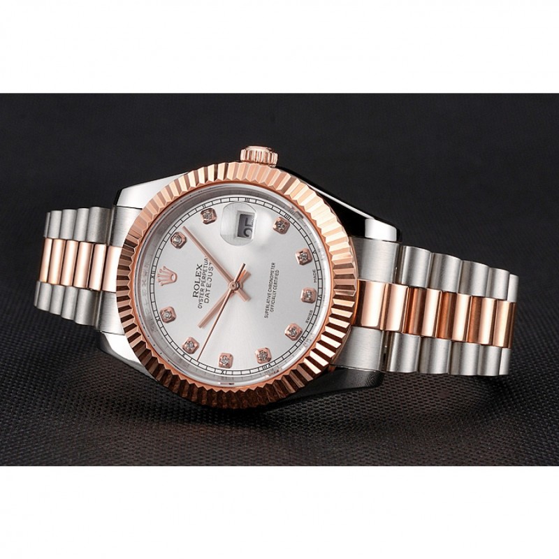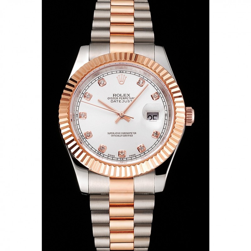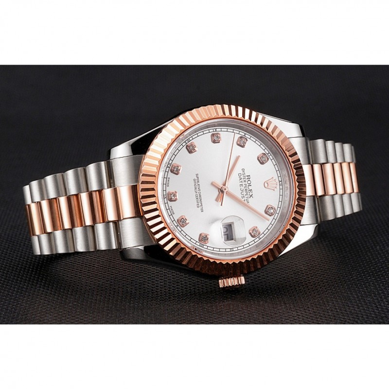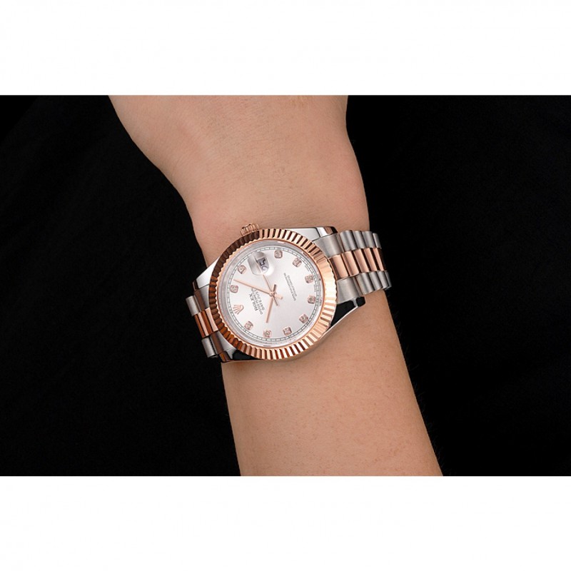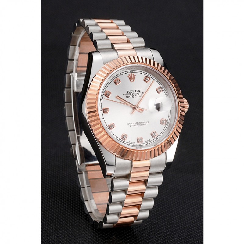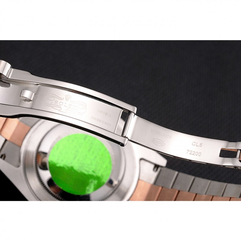 Bracelet:en acier inoxydable brossé et 18k bracelet plaqué lien or rose avec le logo Rolex sculpté fois en boucle caché