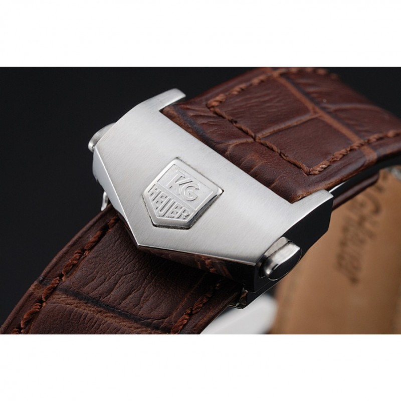 Bracelet:Tag Heuer chaleur en relief sangle crocodile en cuir marron avec Tag Heuer gravé brossé push-libération de pliage en boucle en acier inoxydable
