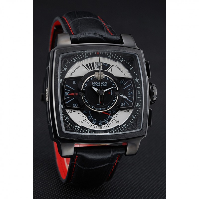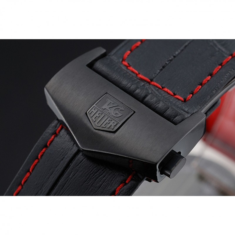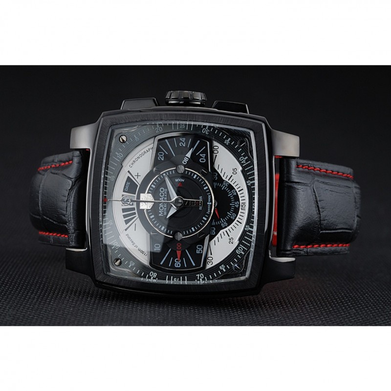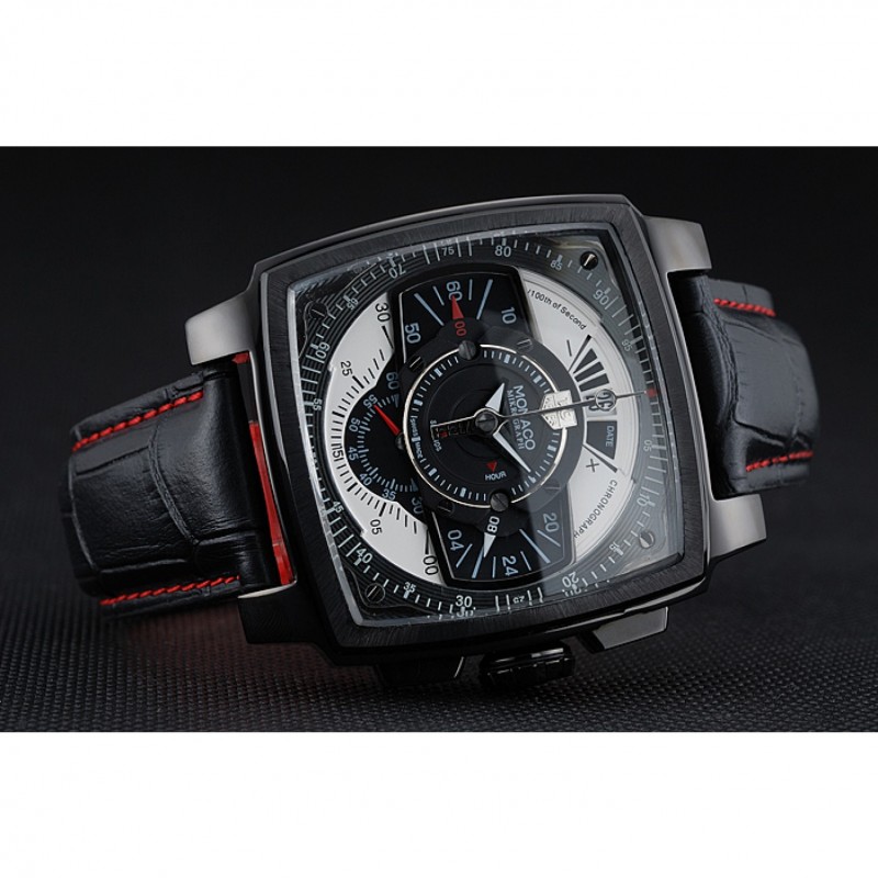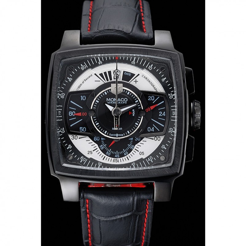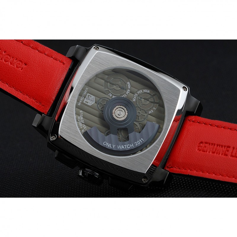 AAA Tag Heuer Monaco Noir-Rouge perforé Bracelet en cuir cadran noir 80309