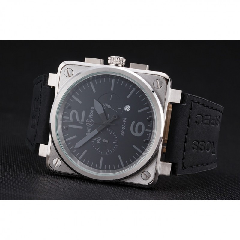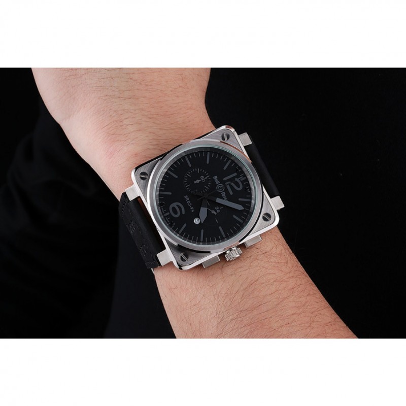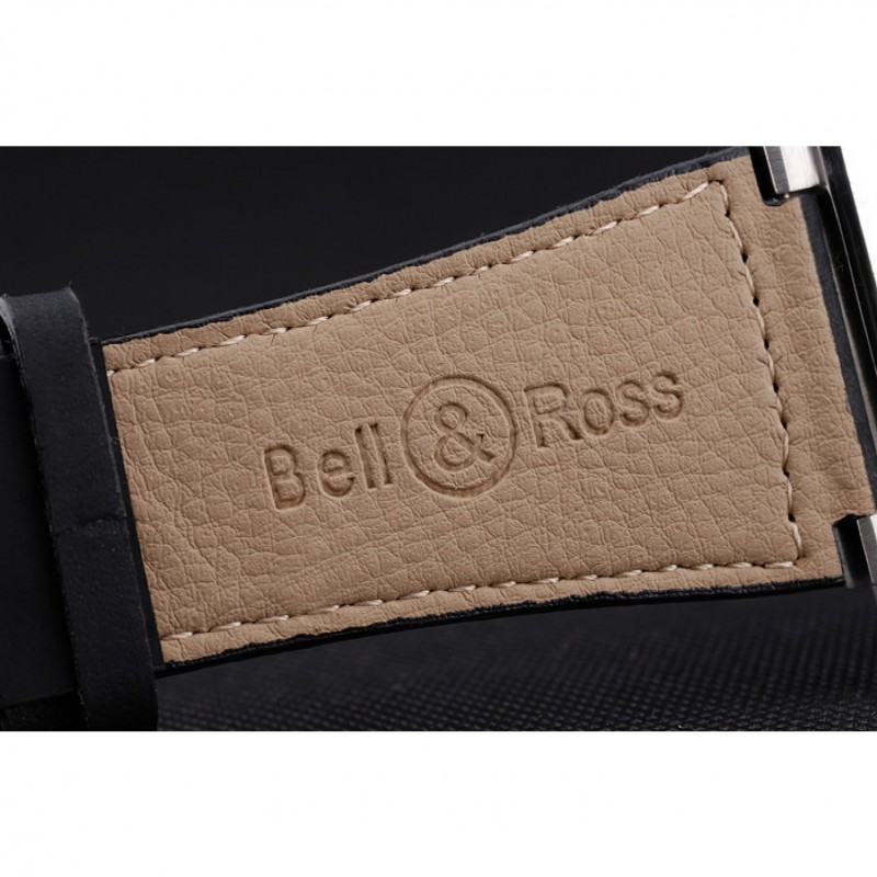 Bracelet:Bell&Ross chaleur bracelet en cuir en daim noir en relief avec le logo gravé fermoir en acier inoxydable brossé crochet boucle
