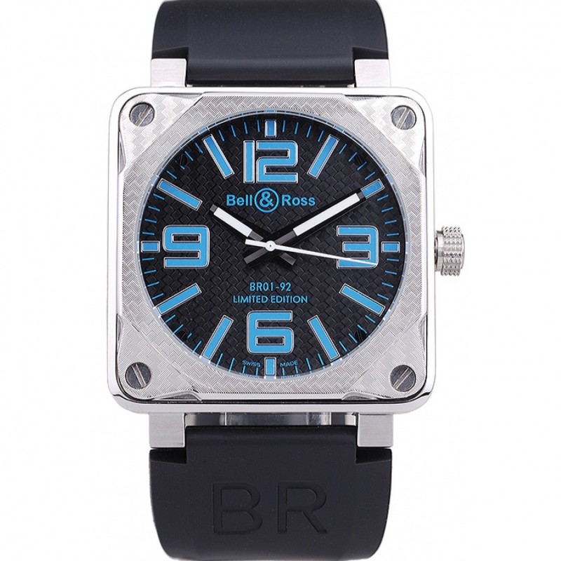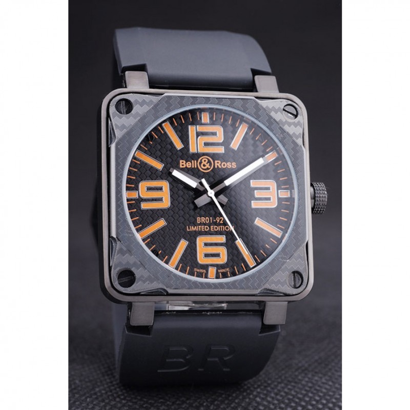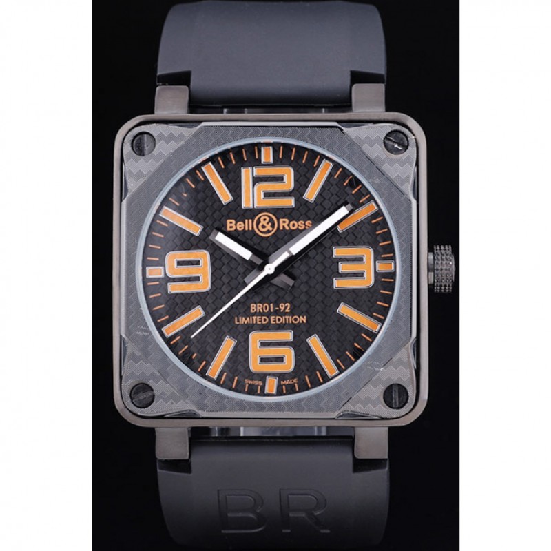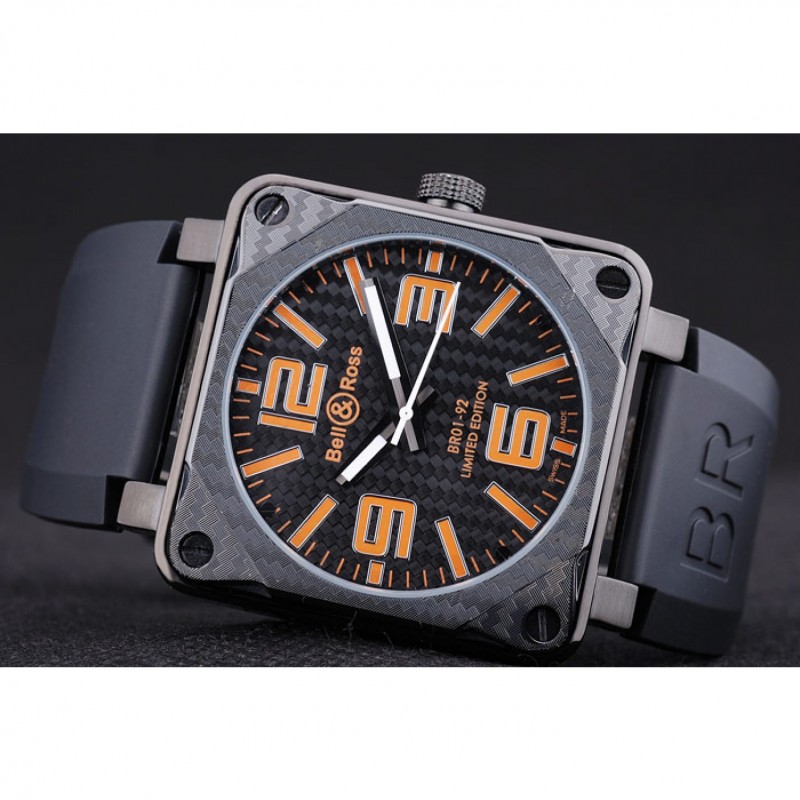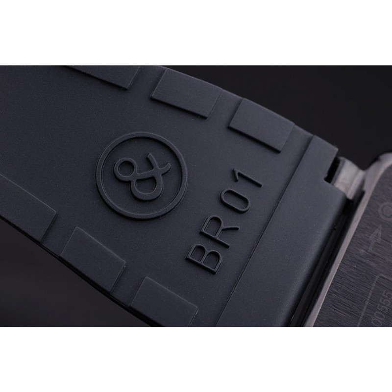 Bracelet:Heat gaufré logo Bell&Ross et le code de produit de bracelet en caoutchouc noir avec fermoir crochet-boucle placage ionique
