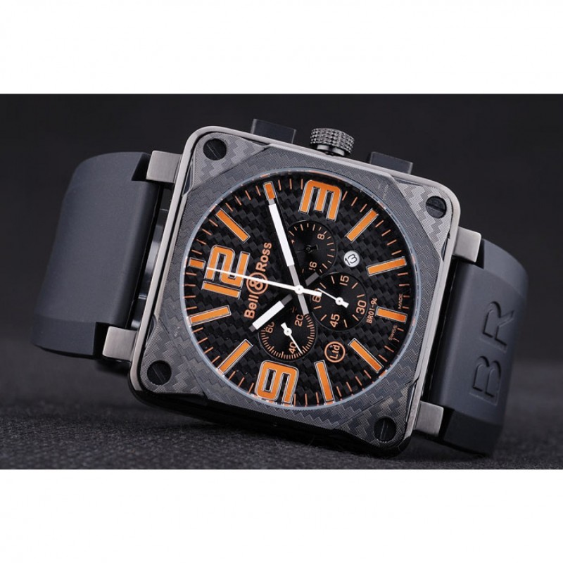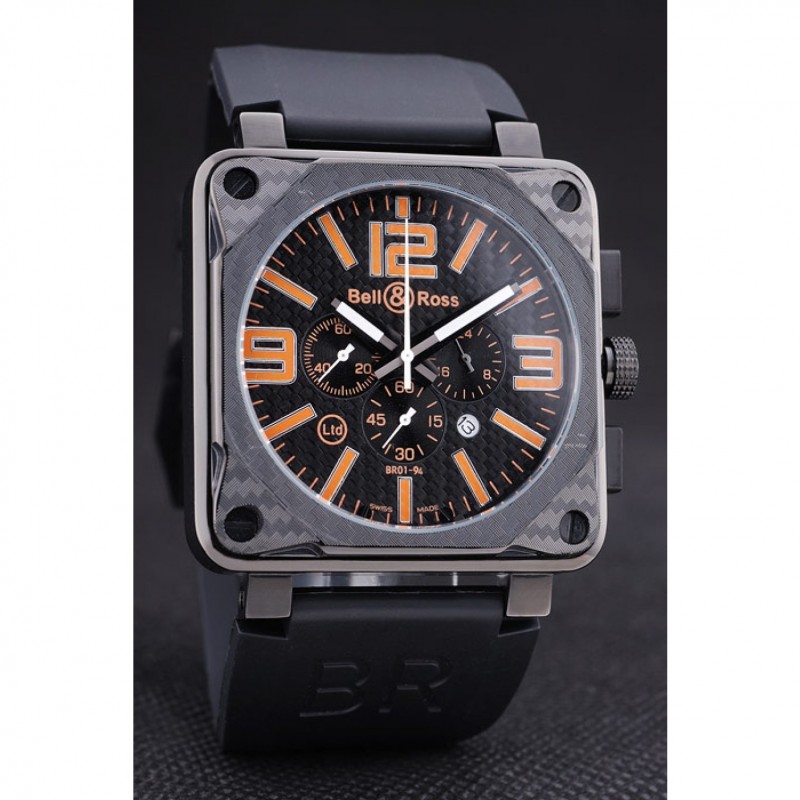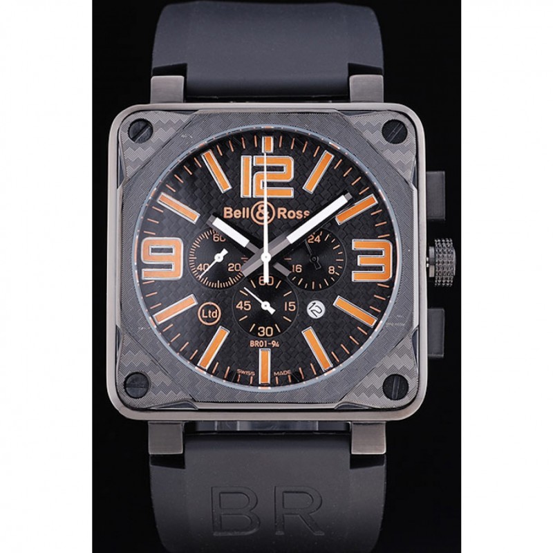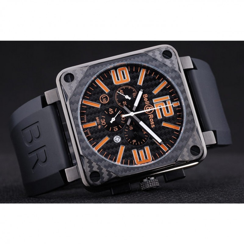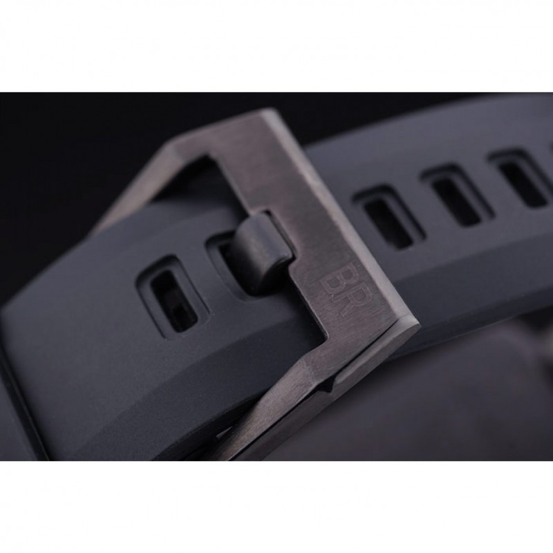 Bracelet:Heat gaufré logo Bell&Ross et le code de produit de bracelet en caoutchouc noir avec fermoir crochet-boucle placage ionique
