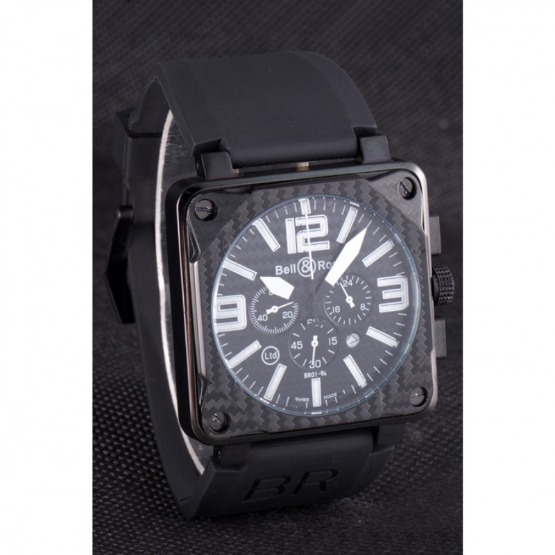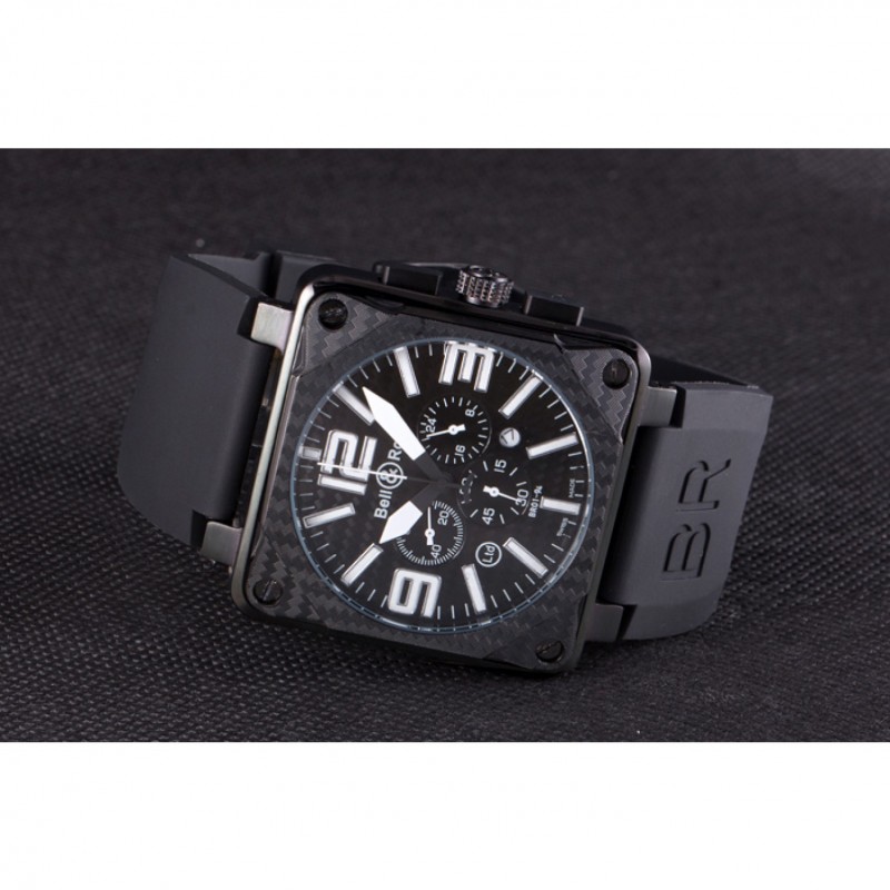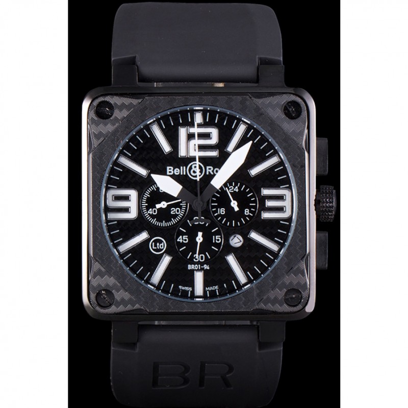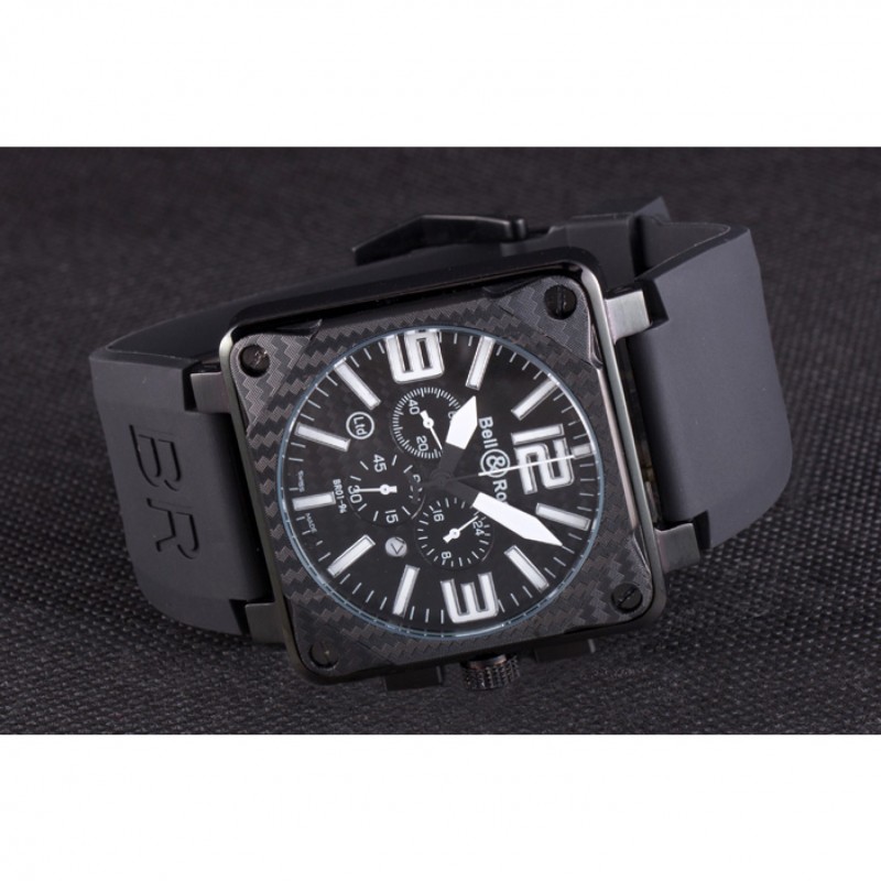 Bracelet:Heat gaufré logo Bell&Ross et le code de produit de bracelet en caoutchouc noir avec fermoir crochet-boucle placage ionique