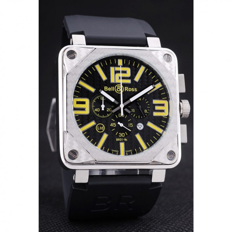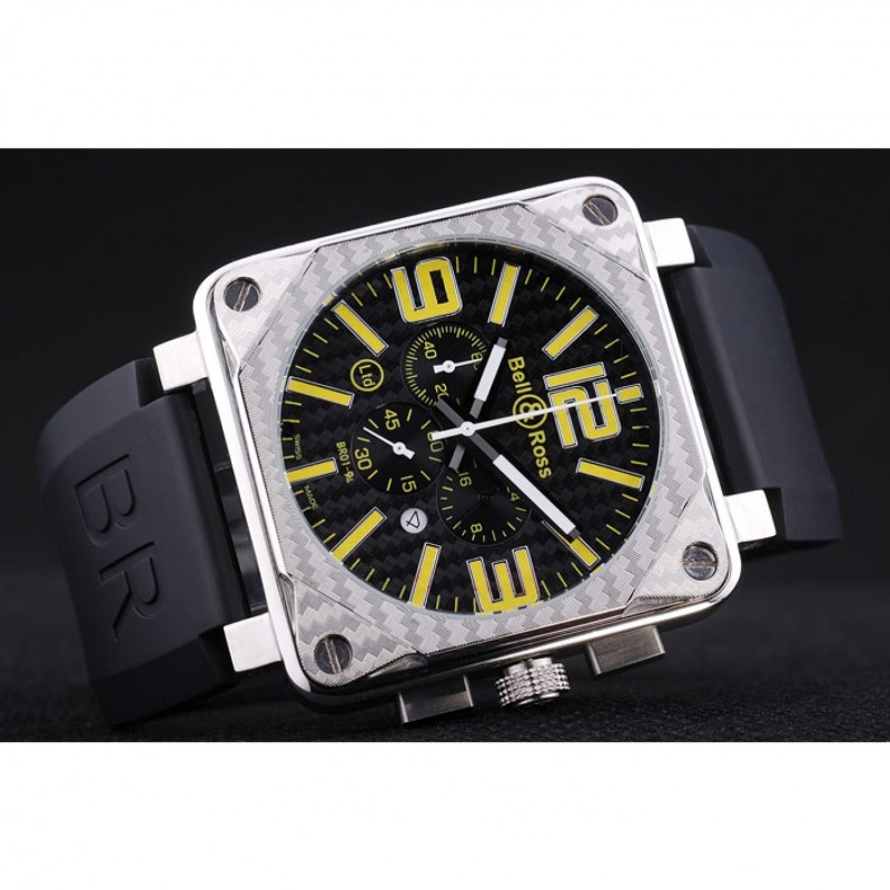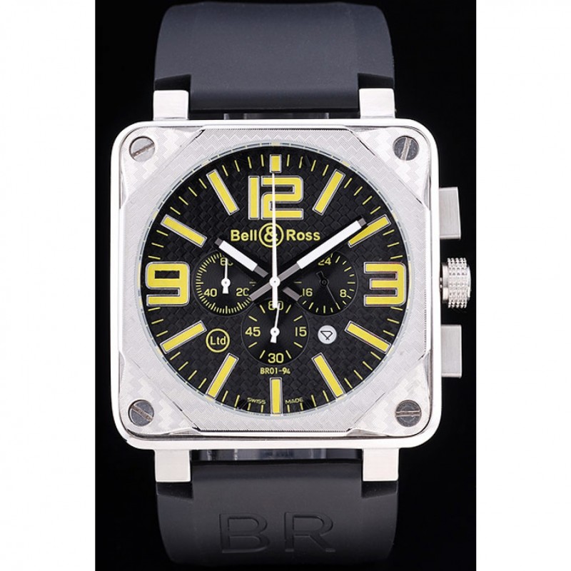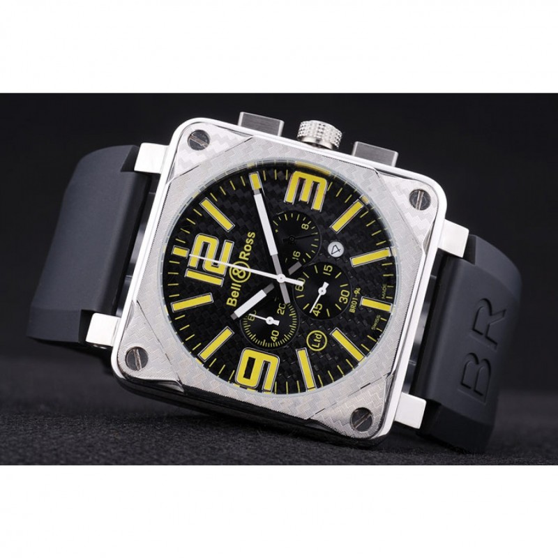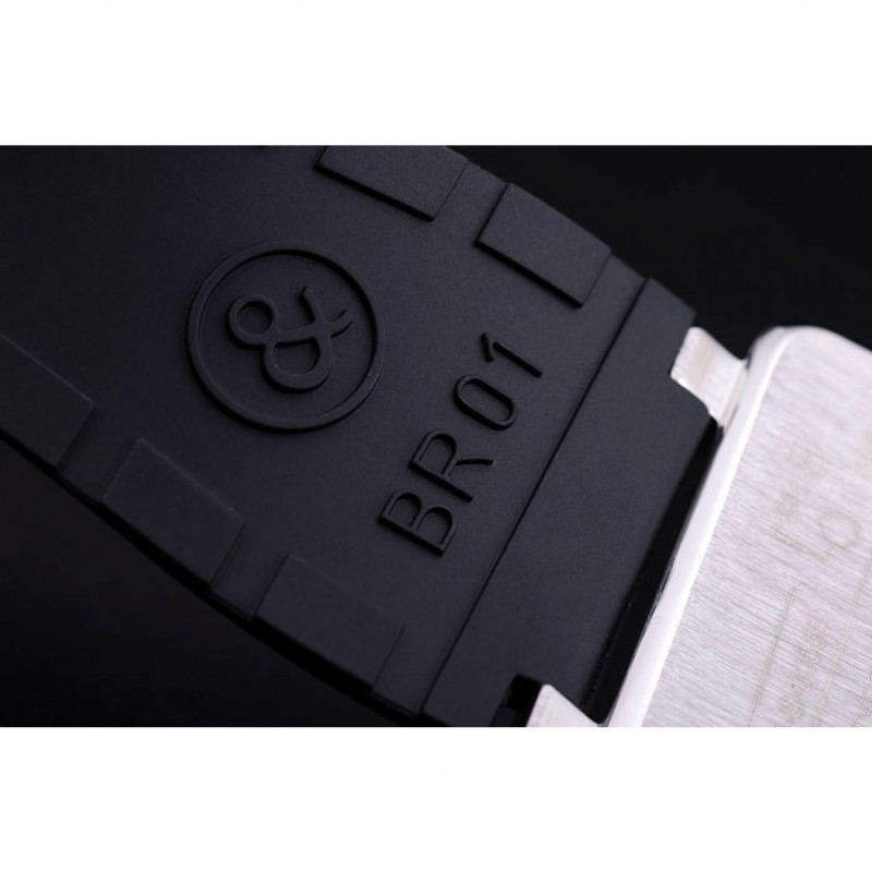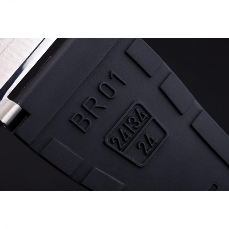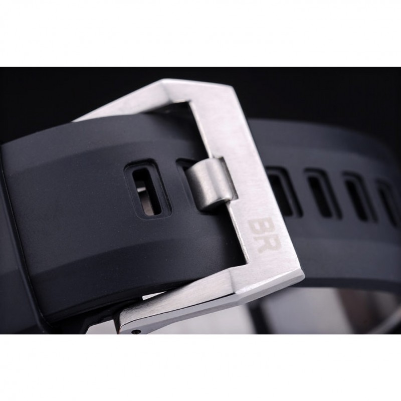 Bracelet:Heat gaufré logo Bell&Ross et le code produit bracelet en caoutchouc noir avec BR inscrit brossé fermoir crochet-boucle en acier inoxydable