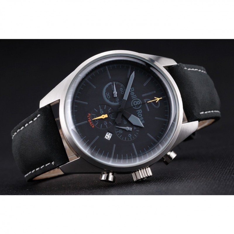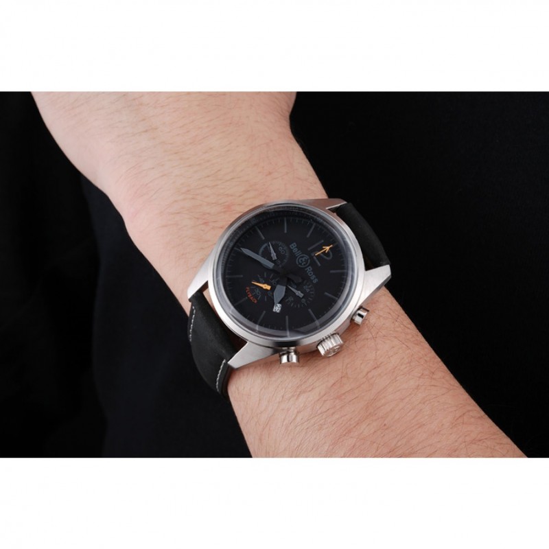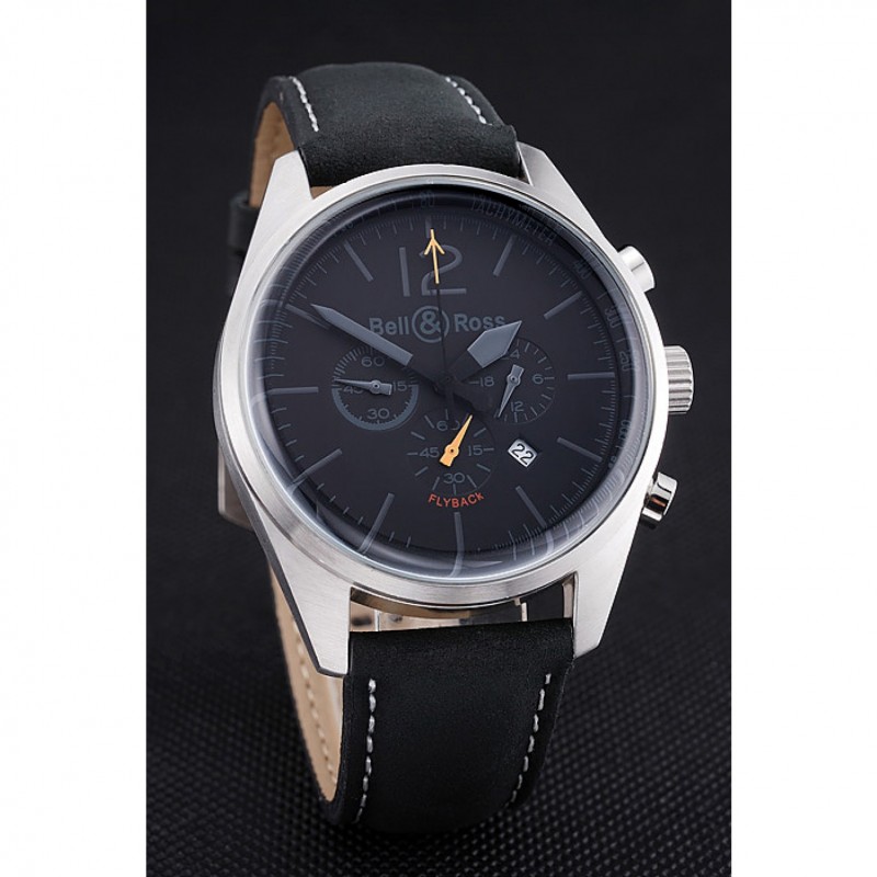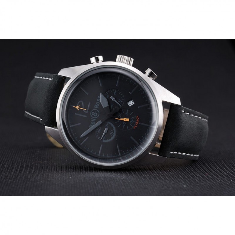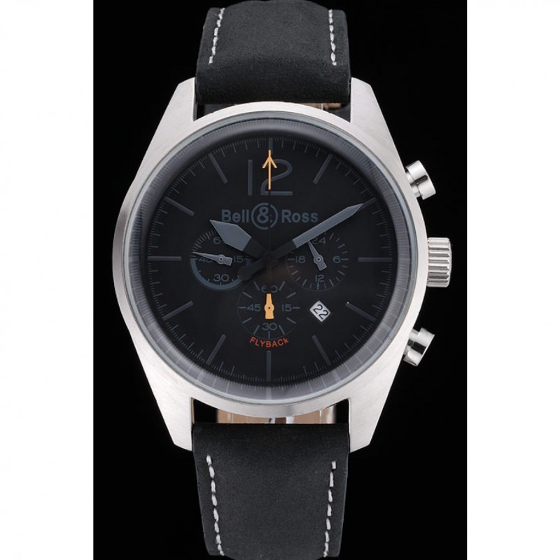 Bracelet:Bell&Ross chaleur bracelet en cuir velours noir en relief avec logo inscrit brossé fermoir crochet-boucle en acier inoxydable