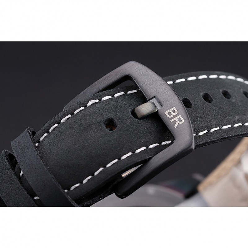 Bracelet:Bell&chaleur Ross sangle en daim noir en relief avec des coutures de fil blanc et logo crochet de placage ionique gravée fermoir -buckle