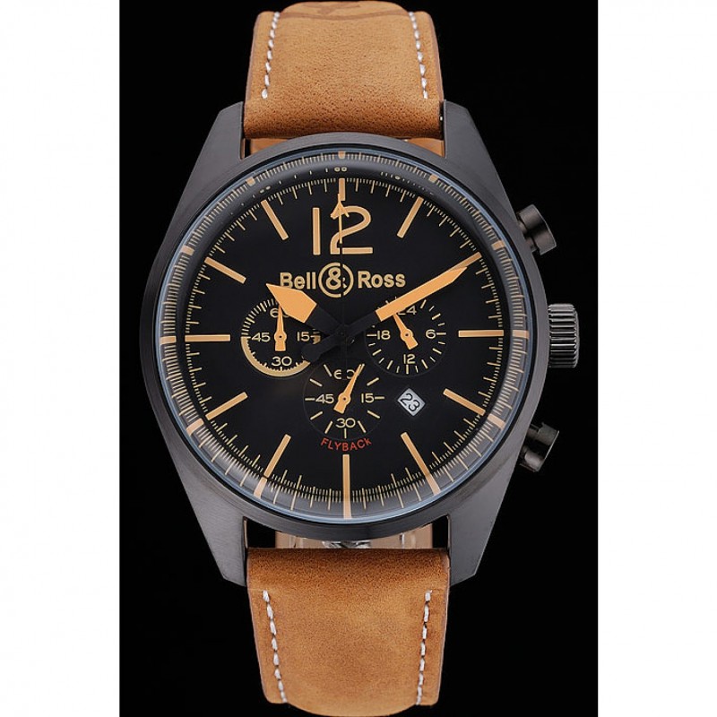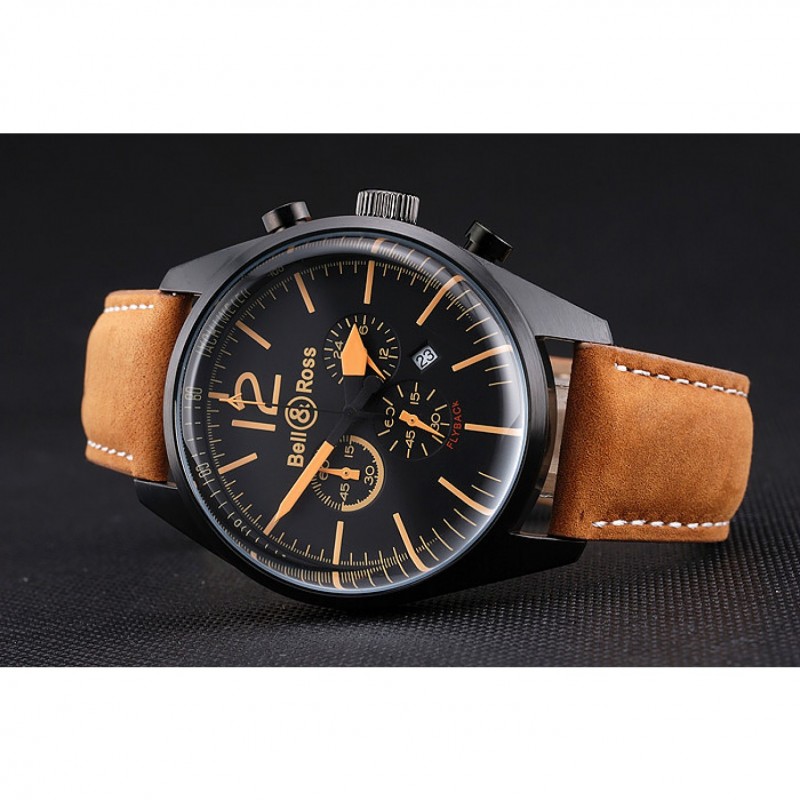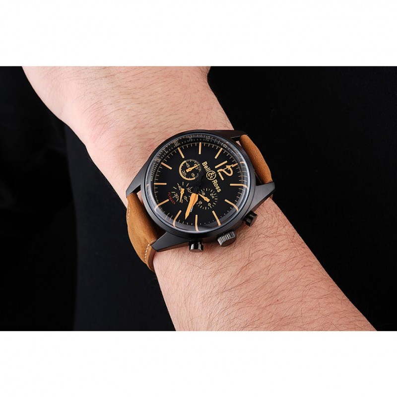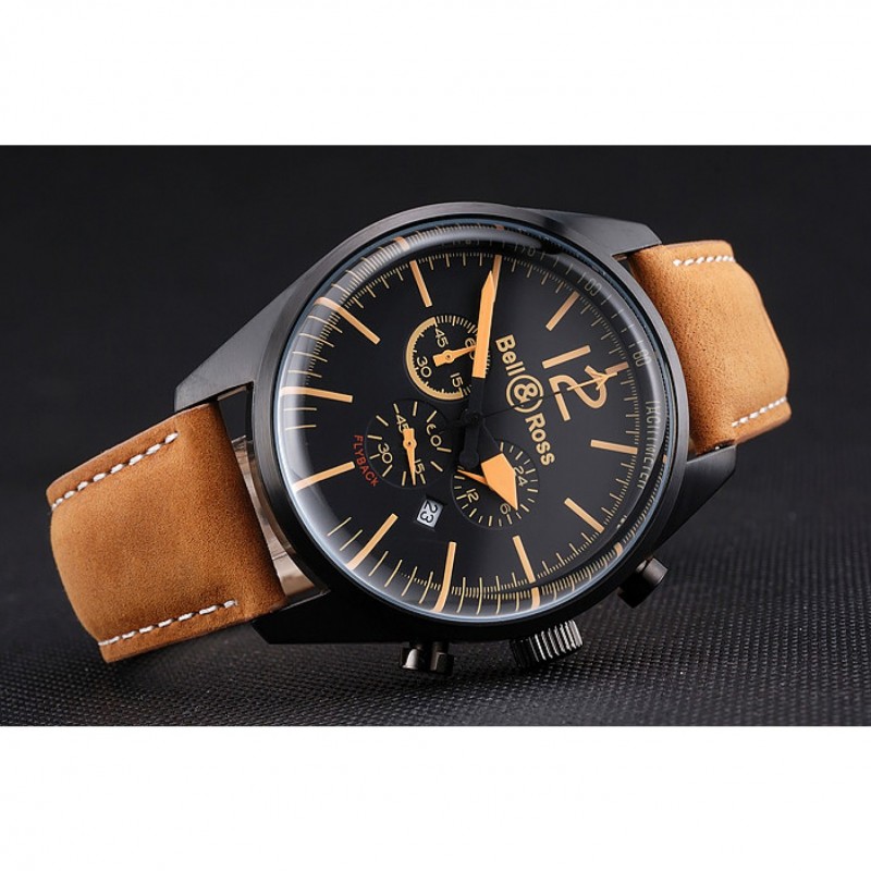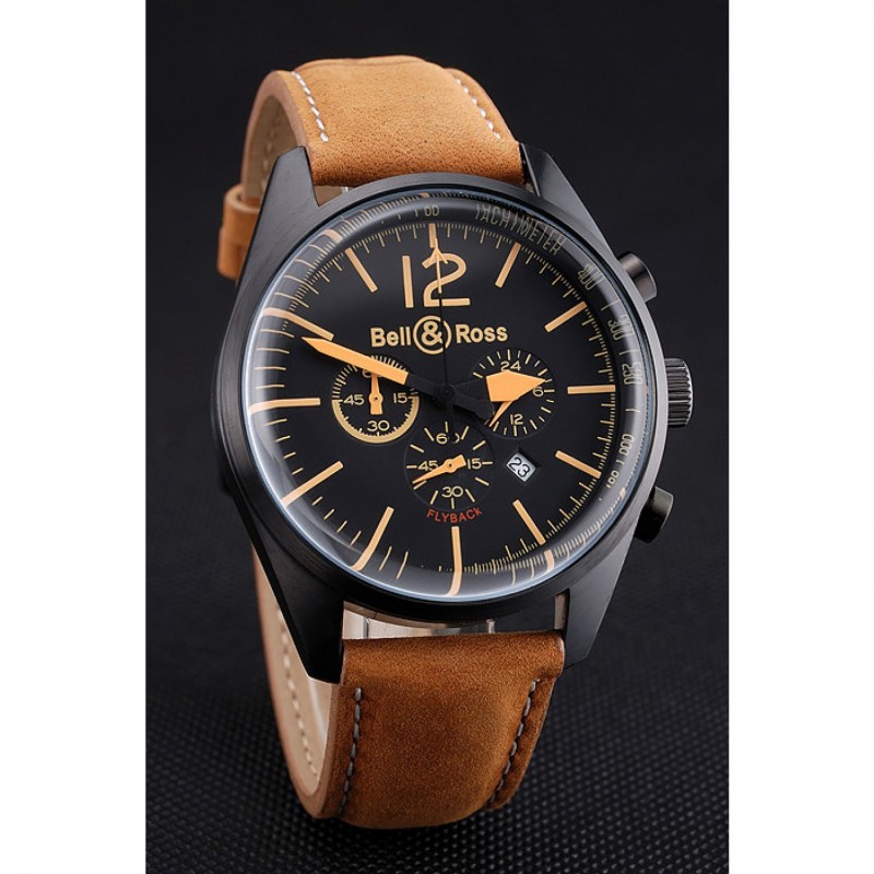 Bracelet:Bell&Ross chaleur bracelet en cuir suède tan en relief avec logo gravé fermoir crochet-boucle ion-plaqué