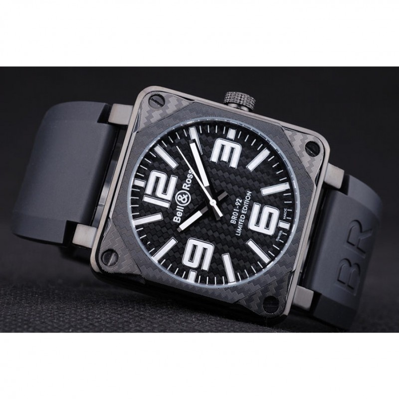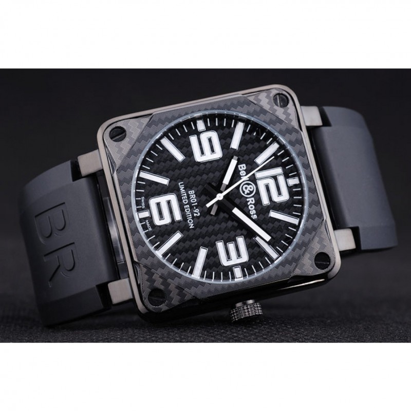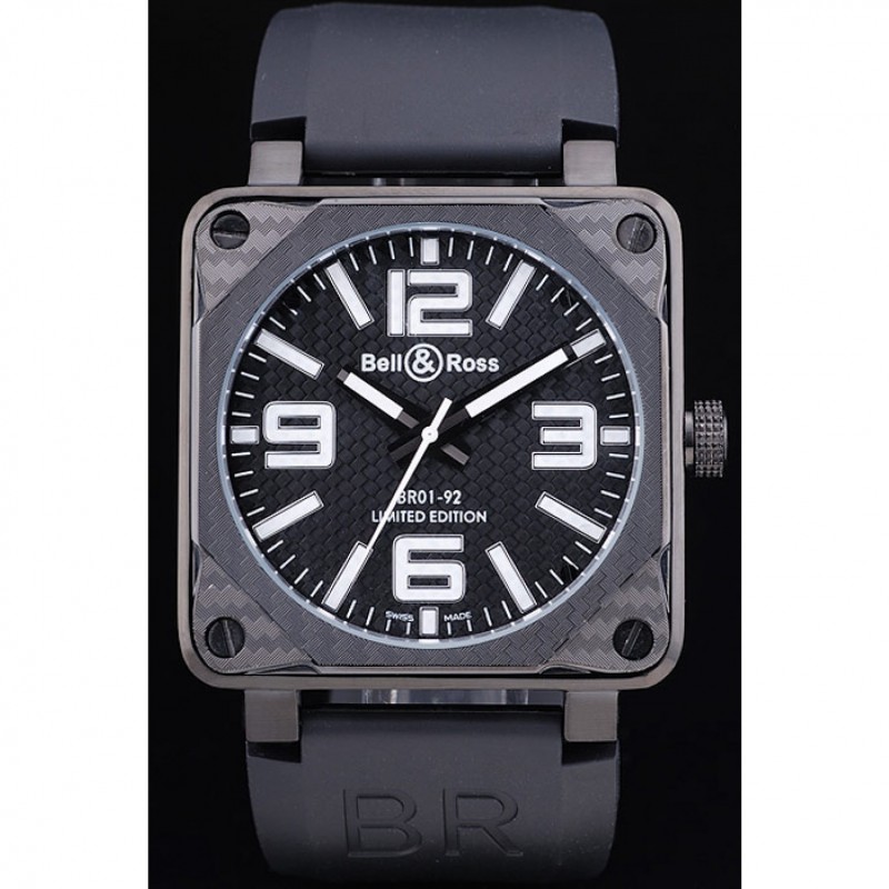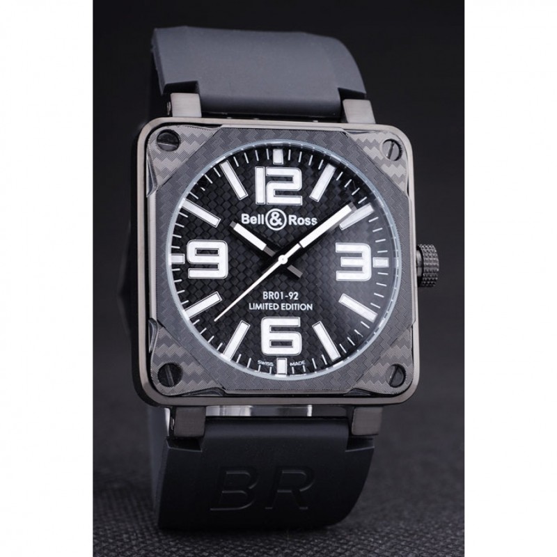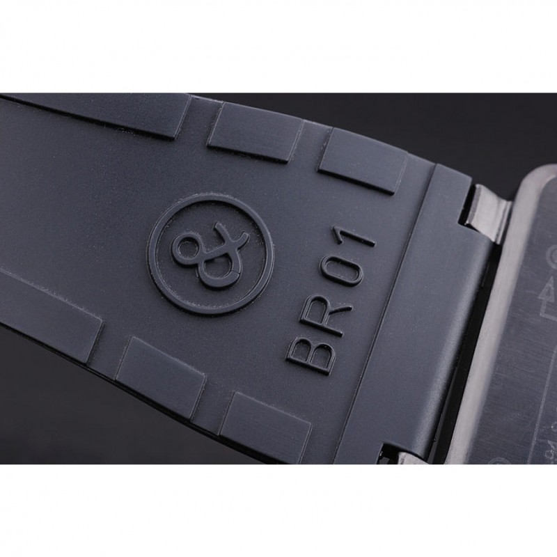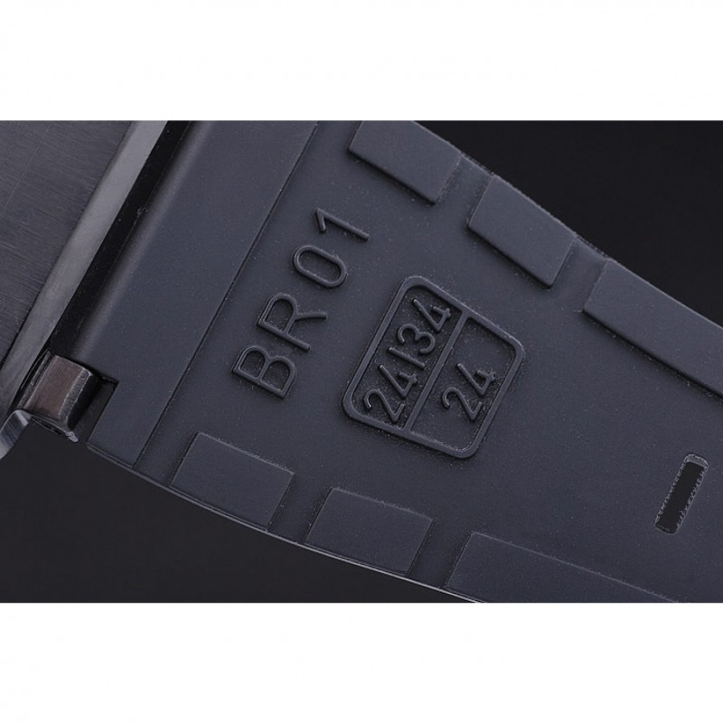 Bracelet:Bell&Ross logo et le code produit gaufré bracelet en caoutchouc noir avec fermoir crochet-boucle placage ionique