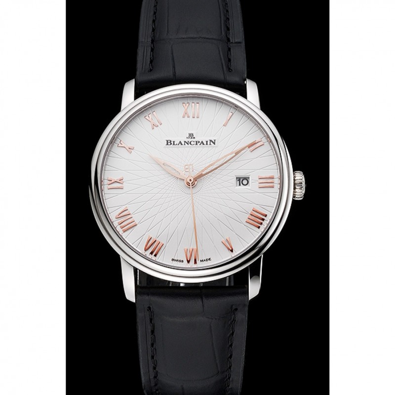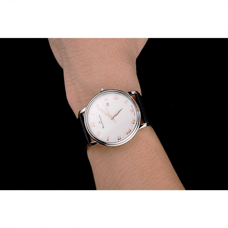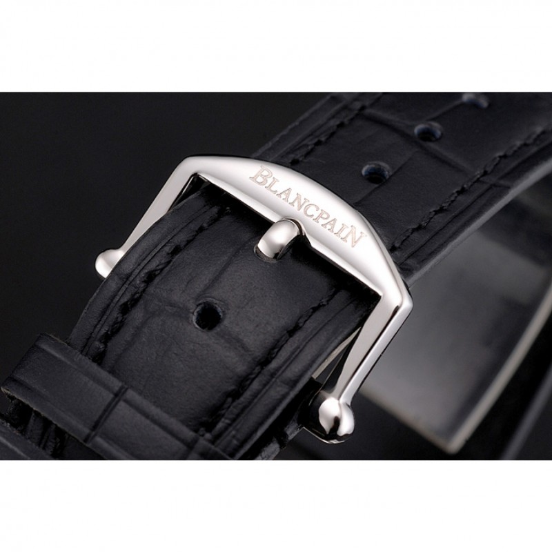 Bracelet:Blancpain chaleur bracelet en cuir crocodile noir en relief avec Blancpain inscrit en acier inoxydable poli fermoir crochet-boucle
