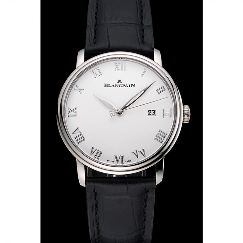 Bracelet:Blancpain chaleur bracelet en cuir crocodile noir en relief avec Blancpain inscrit en acier inoxydable poli fermoir crochet-boucle