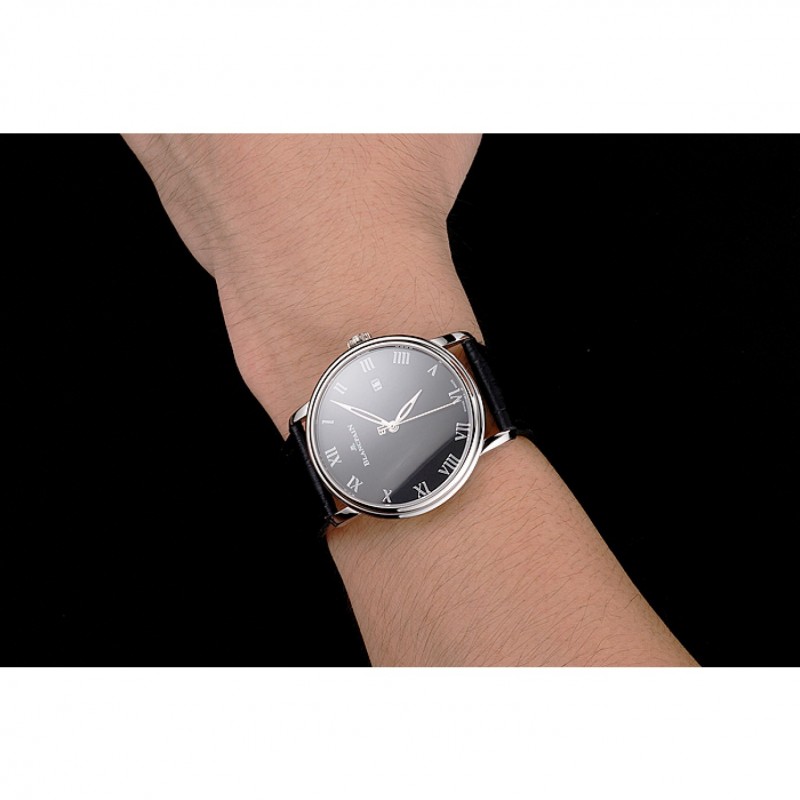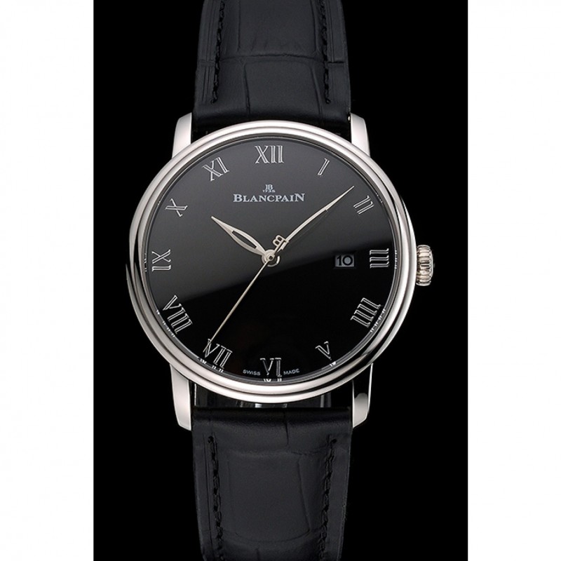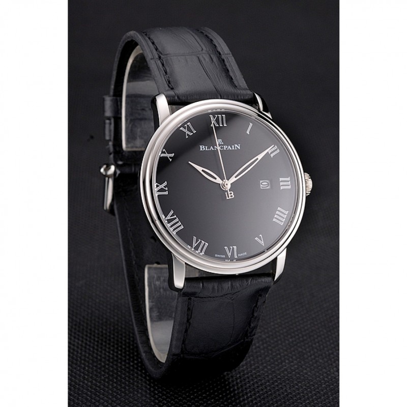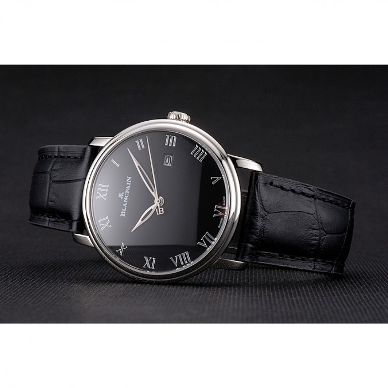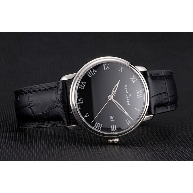 Bracelet:Blancpain chaleur bracelet en cuir crocodile noir en relief avec Blancpain inscrit en acier inoxydable poli fermoir crochet-boucle