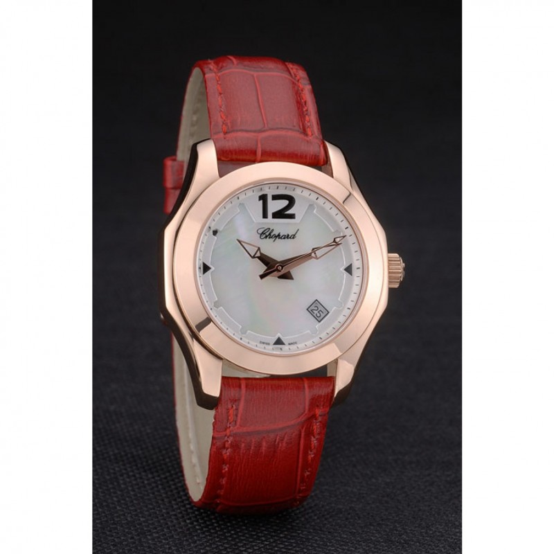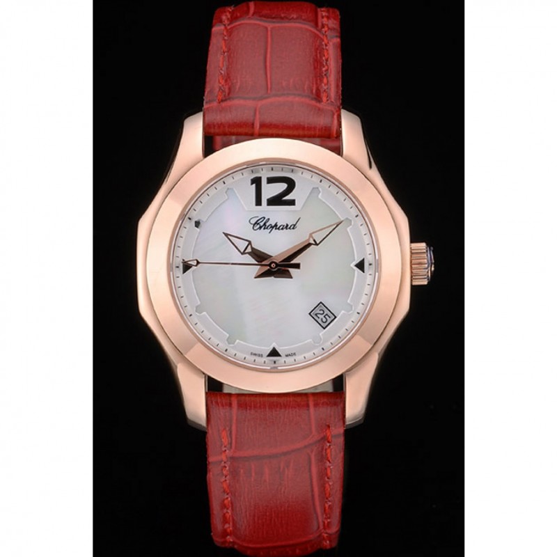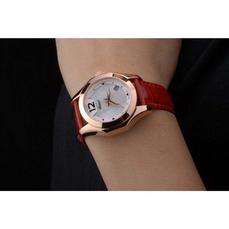 Bracelet:chaleur Chopard bracelet en cuir de crocodile rouge en relief avec Chopard inscrit 18k rose plaqué or fermoir crochet-boucle