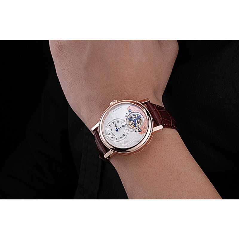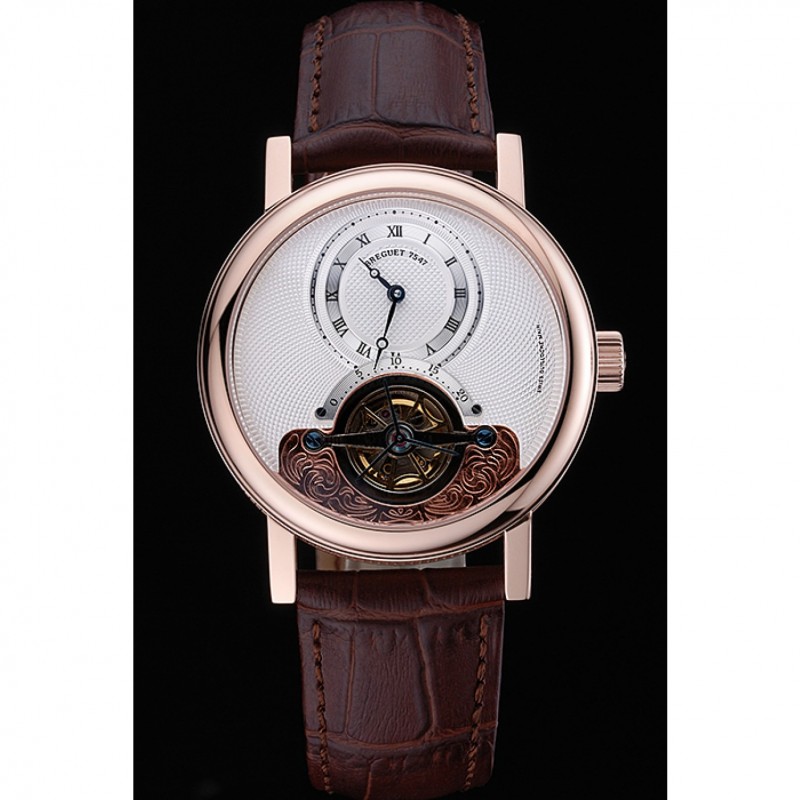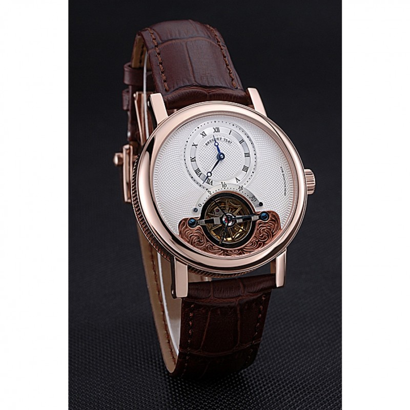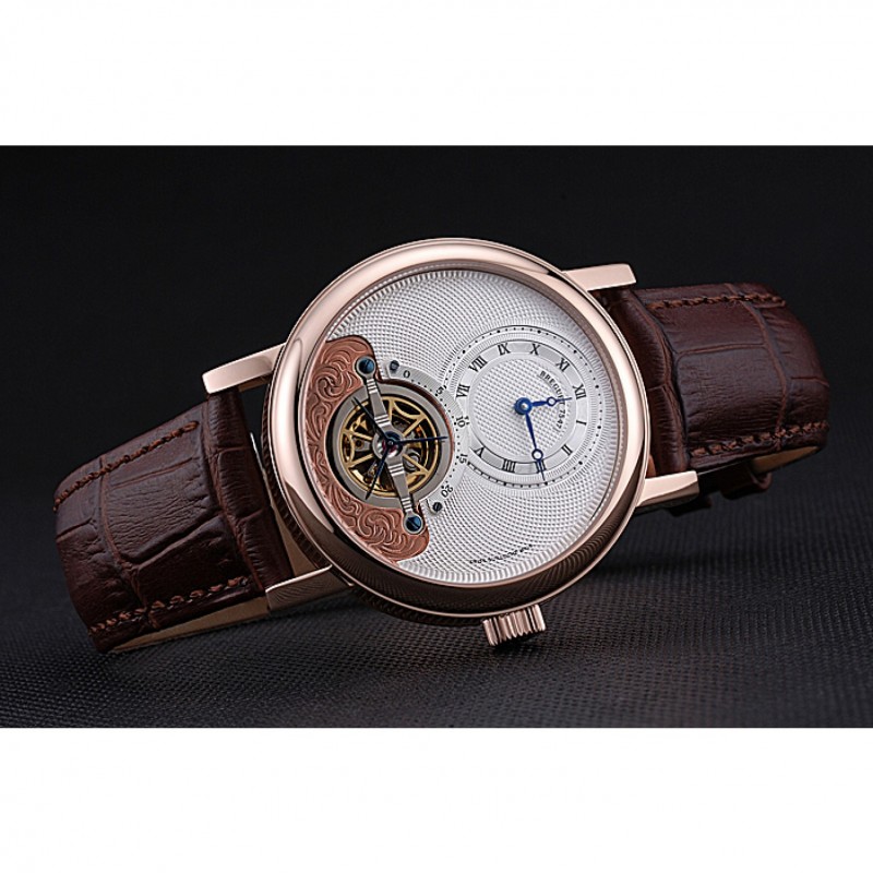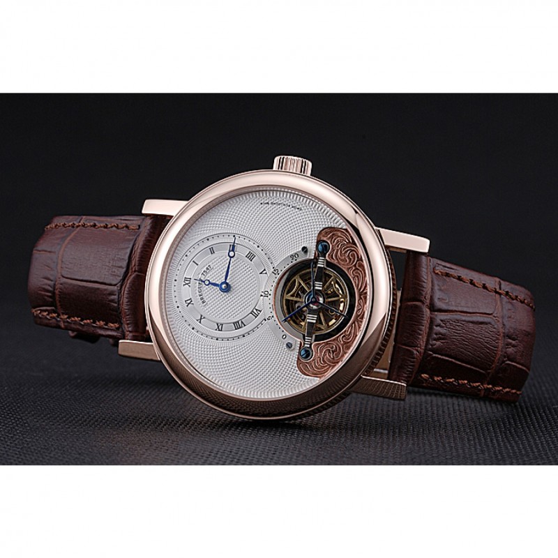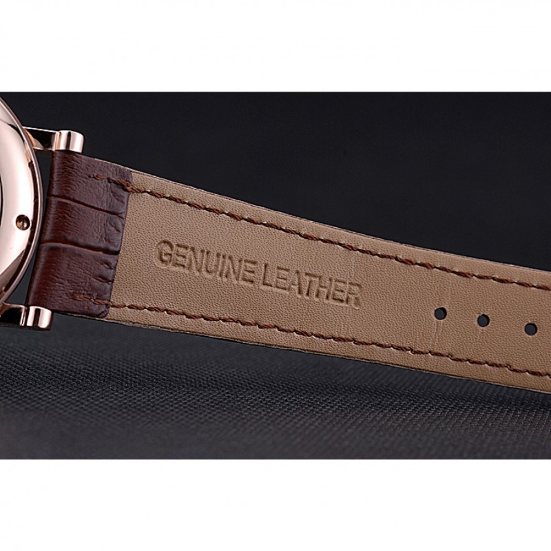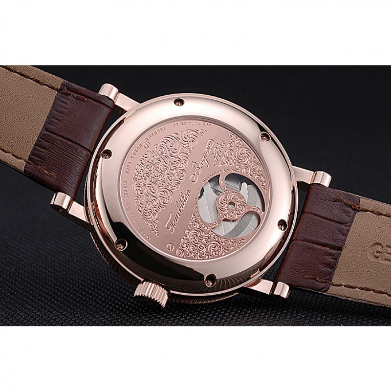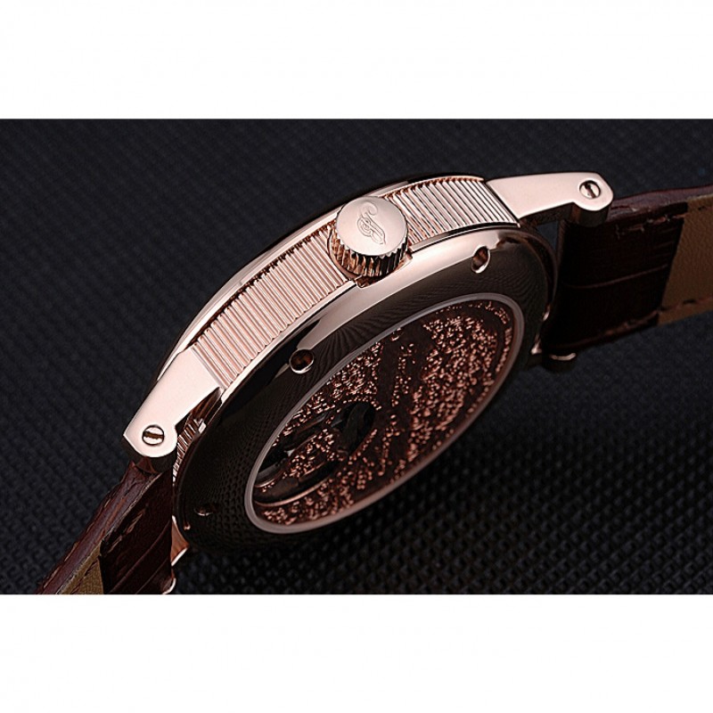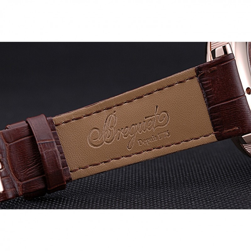 Bracelet:Breguet chaleur bracelet en cuir de crocodile brun gravé Breguet gravé 18k rose plaqué or fermoir à crochet