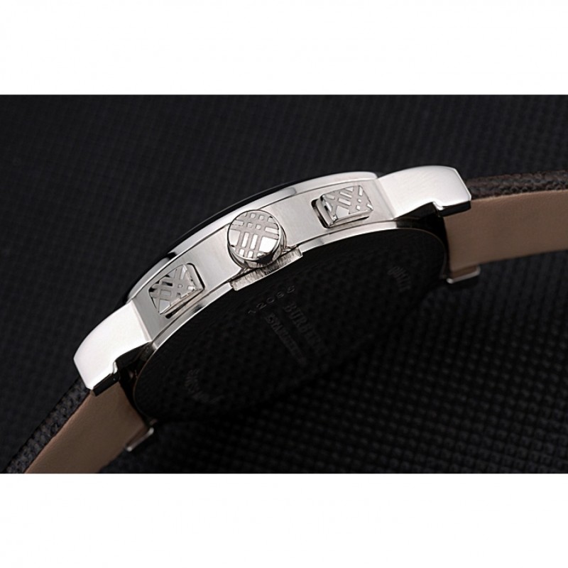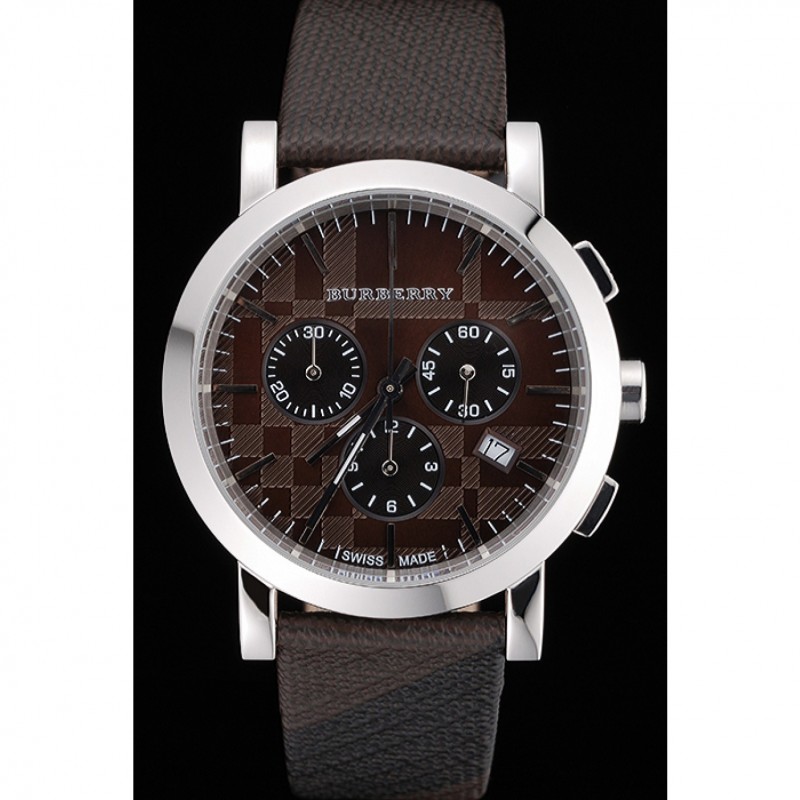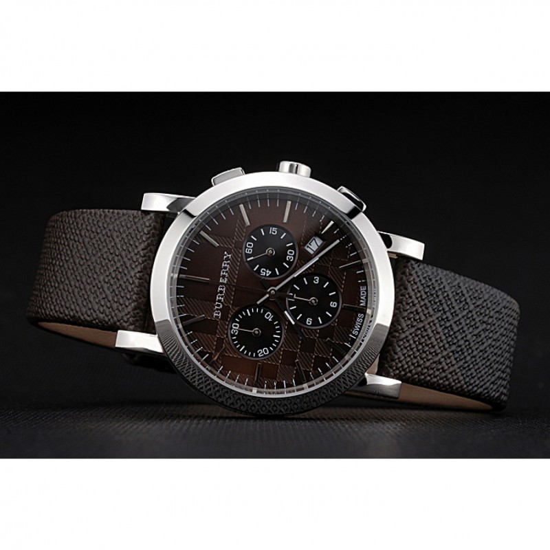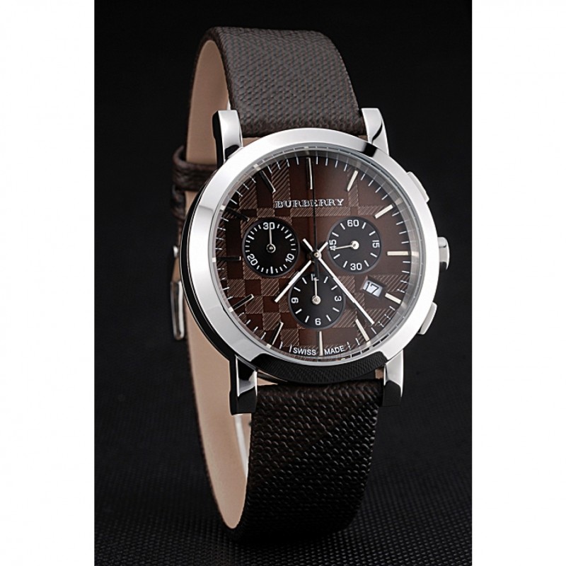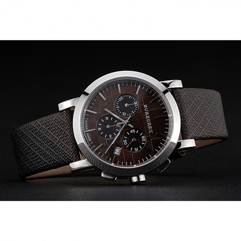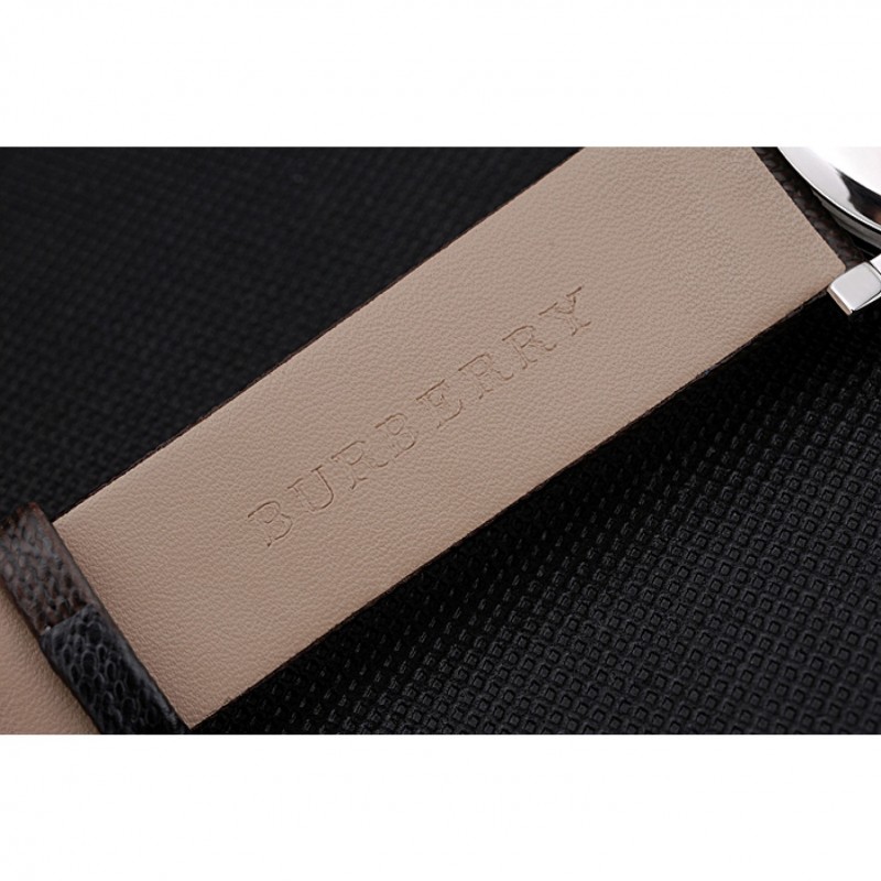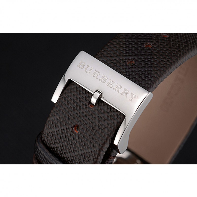 Bracelet:chaleur Burberry cuir texturé marron gravé Burberry gravé poli fermoir crochet-boucle en acier inoxydable