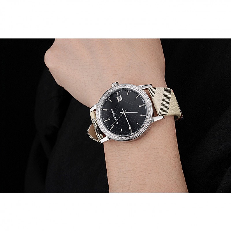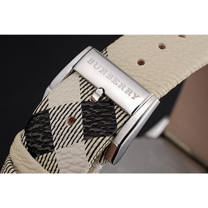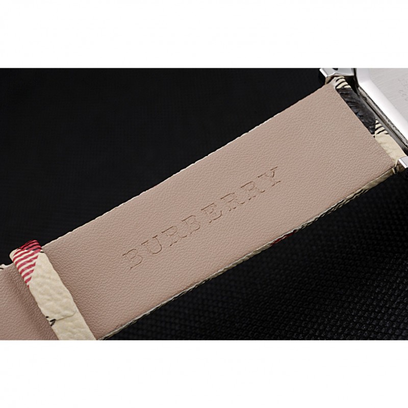 Bracelet:chaleur Burberry en relief bracelet en cuir imprimé à carreaux Burberry et Burberry gravé fermoir crochet-boucle en acier inoxydable poli