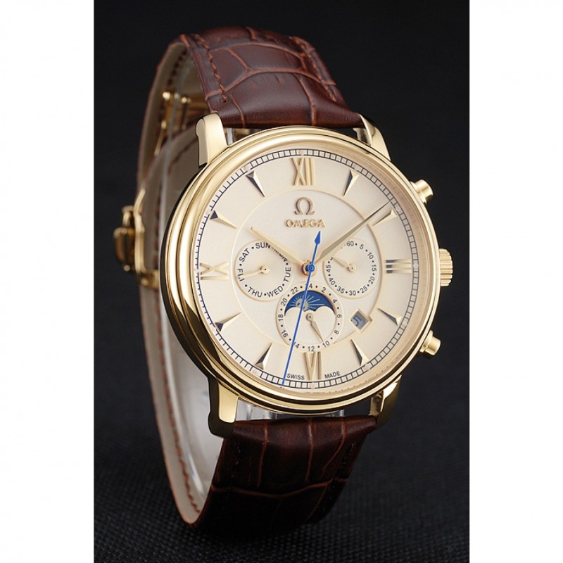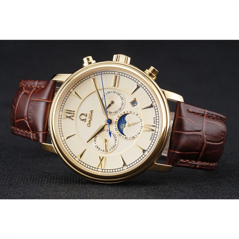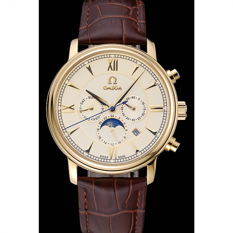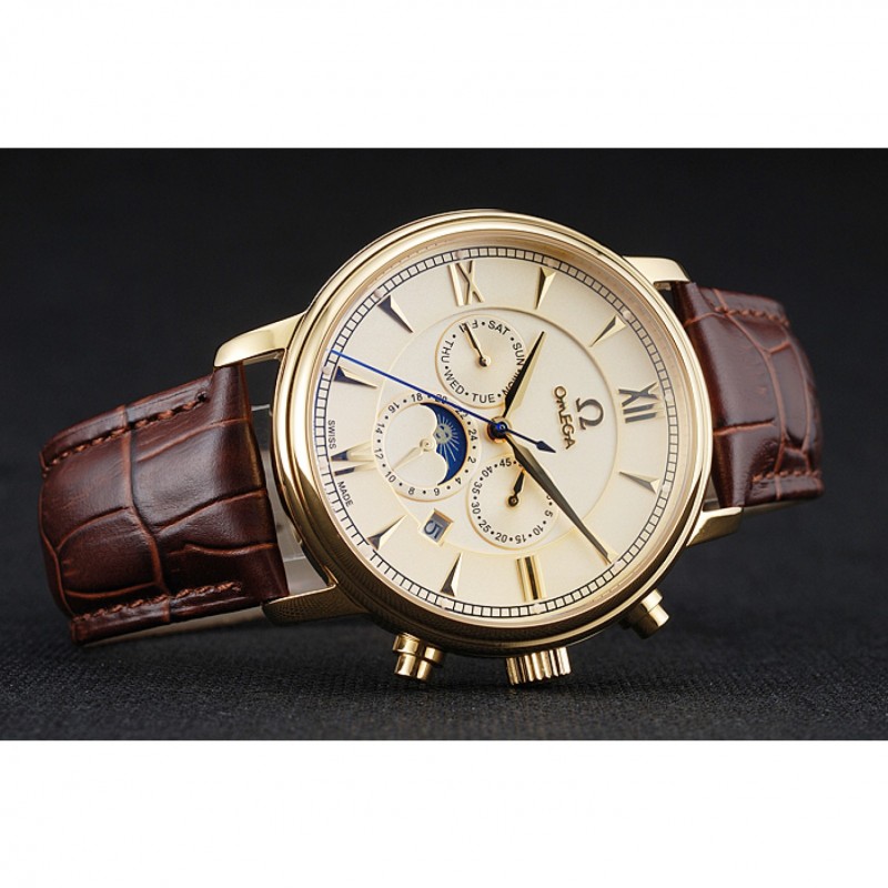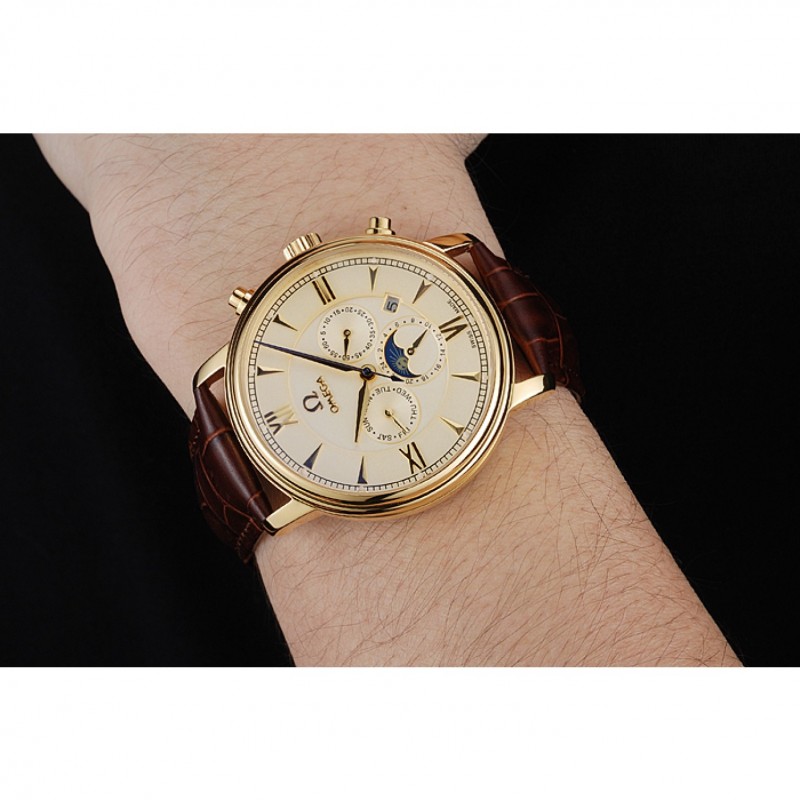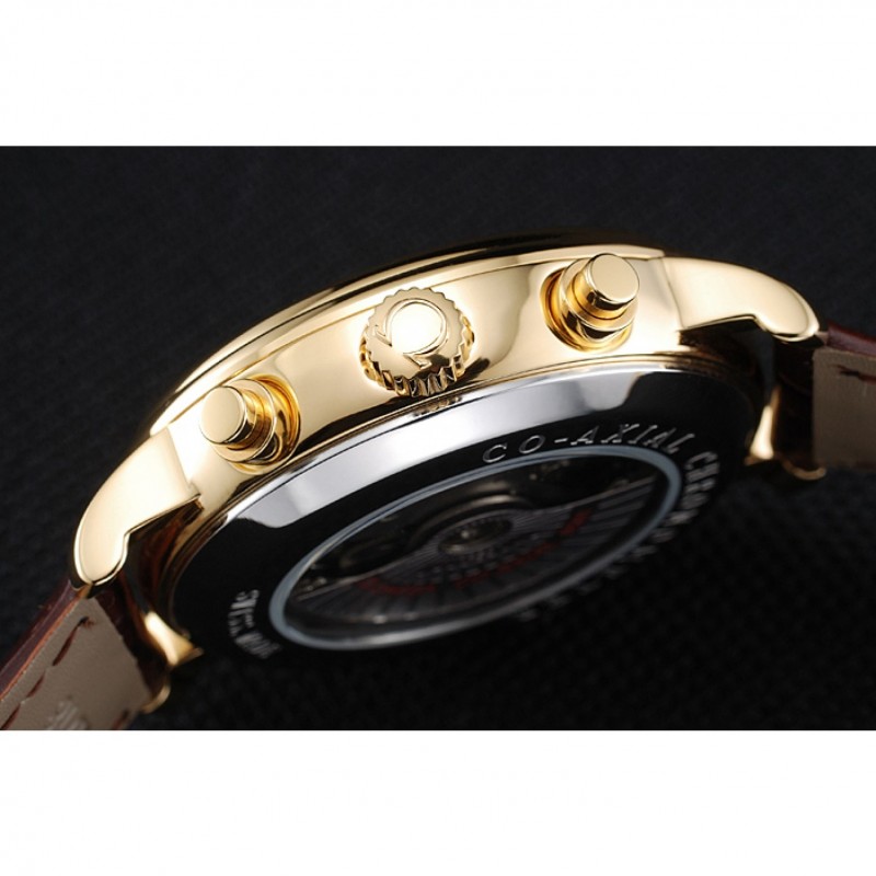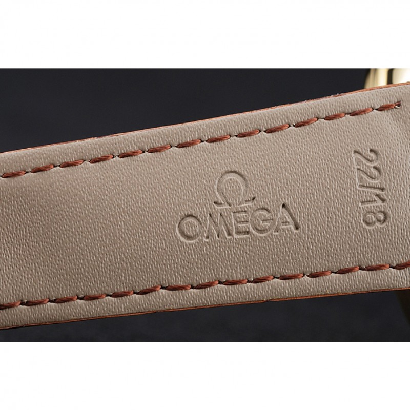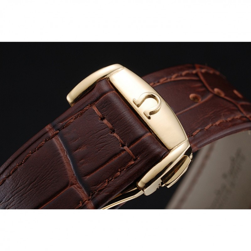 bracelet:Omega et logo chaleur bracelet en cuir de crocodile brun en relief avec le logo Omega gravé or jaune 18 carats plaqué bouton-presse fermoir à boucle