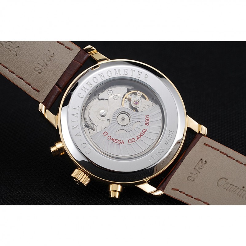 Retour:en acier inoxydable poli encliquetable à l’arrière avec la mécanique révélant transparents centre et gravures Omega