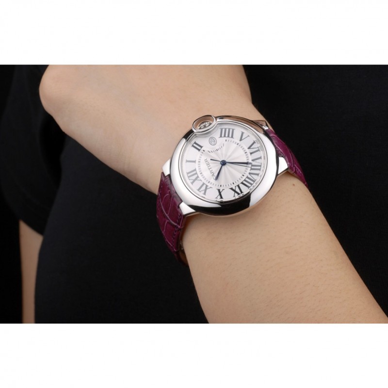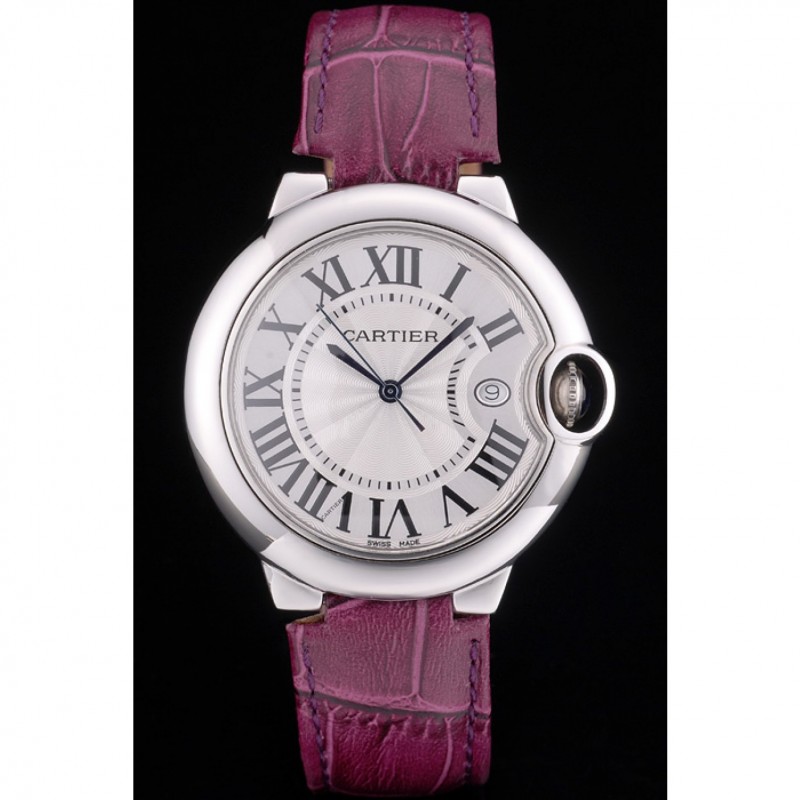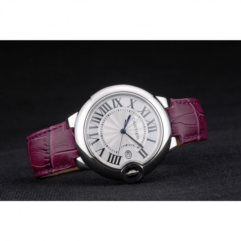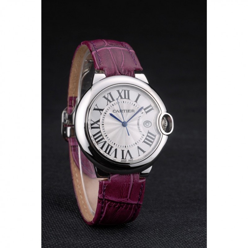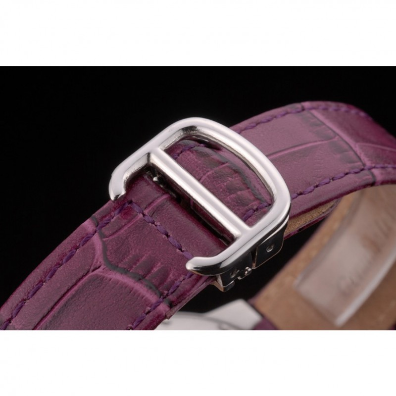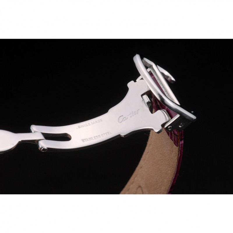 Bracelet:Cartier bracelet en cuir de crocodile violet relief chaleur avec fermoir à boucle rabattable en acier inoxydable poli