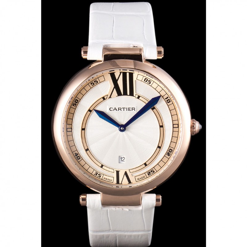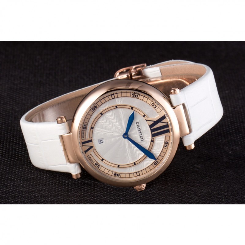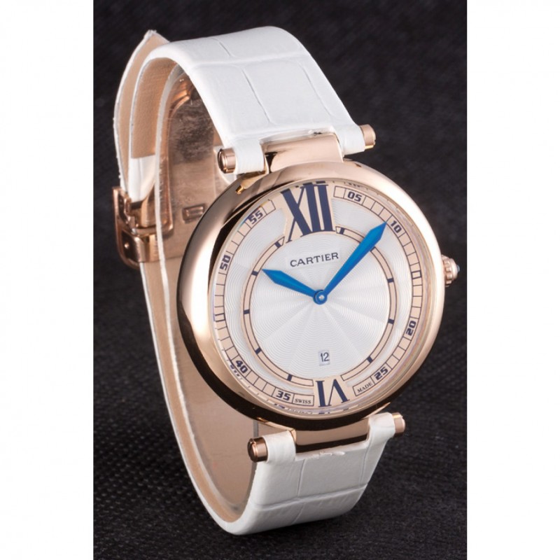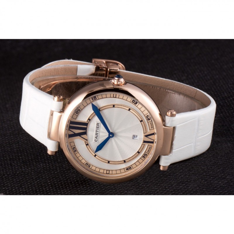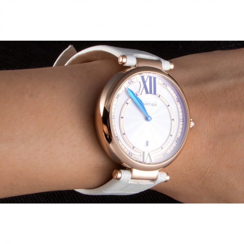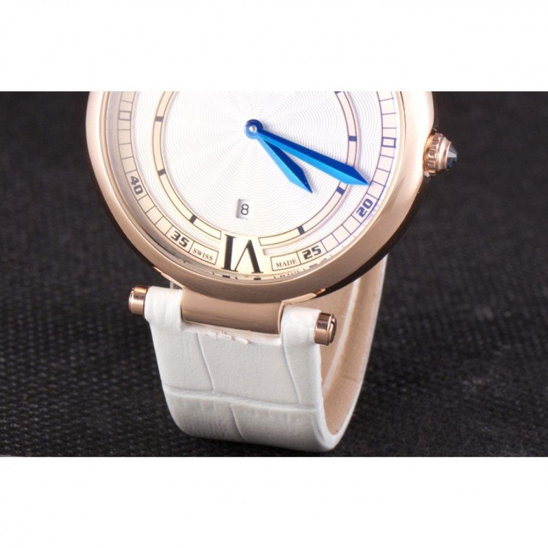 Bracelet:chaleur Cartier bracelet en cuir crocodile blanc gravé rose 18K-plaqué or boucle de fermeture encliquetable