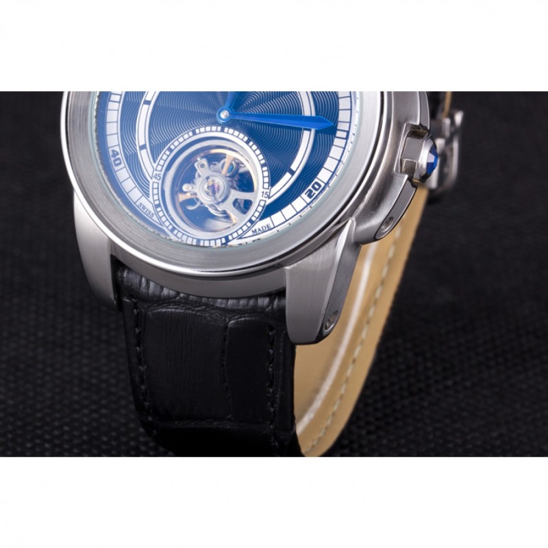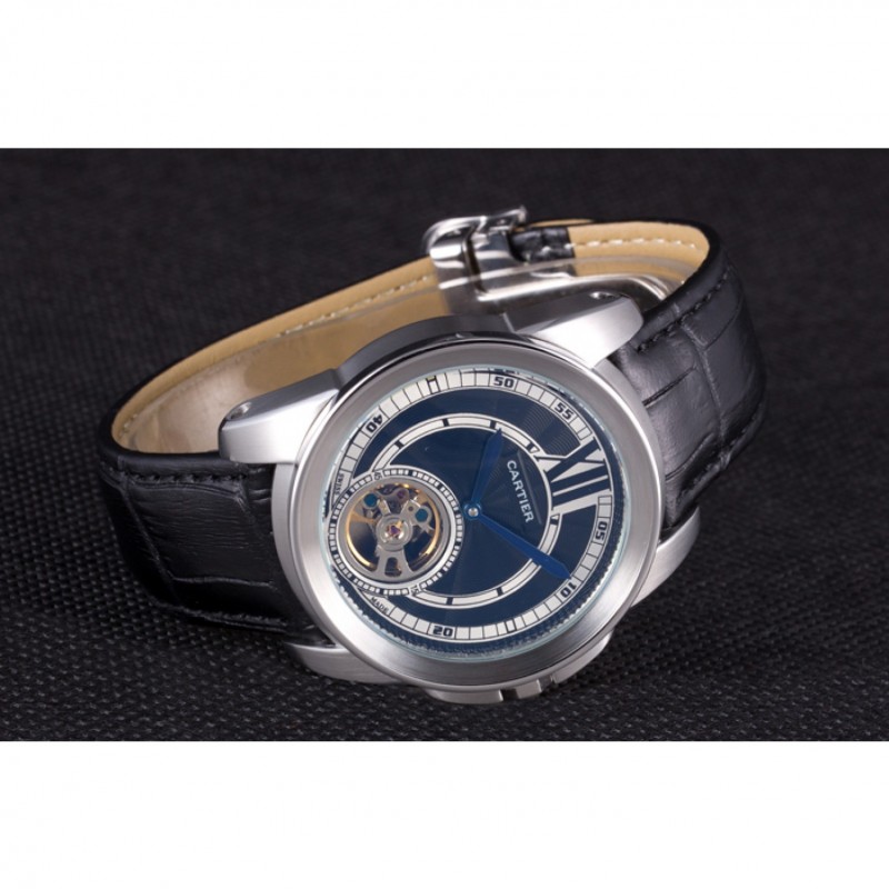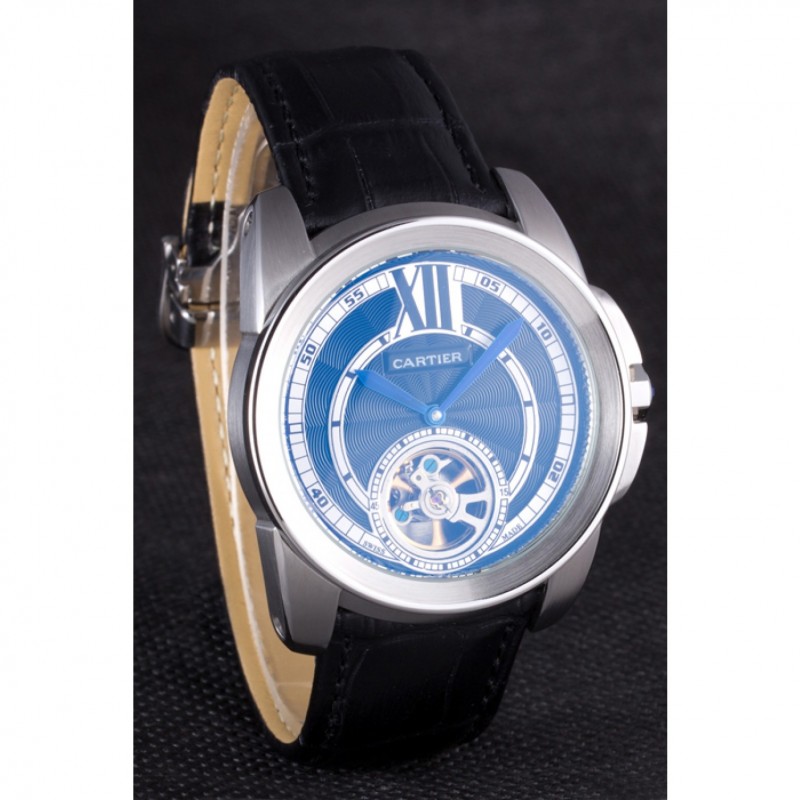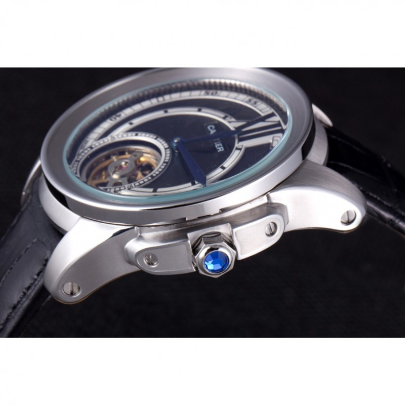RetourCartier gravé en acier inoxydable brossé vissé en arrière avec la mécanique révélant centre transparent