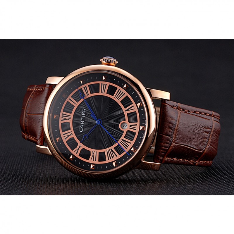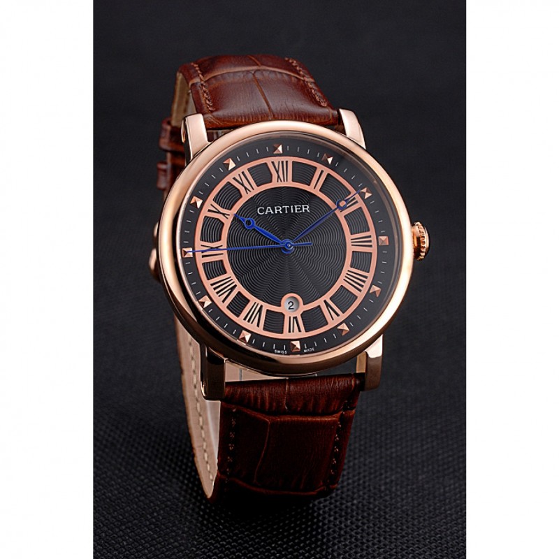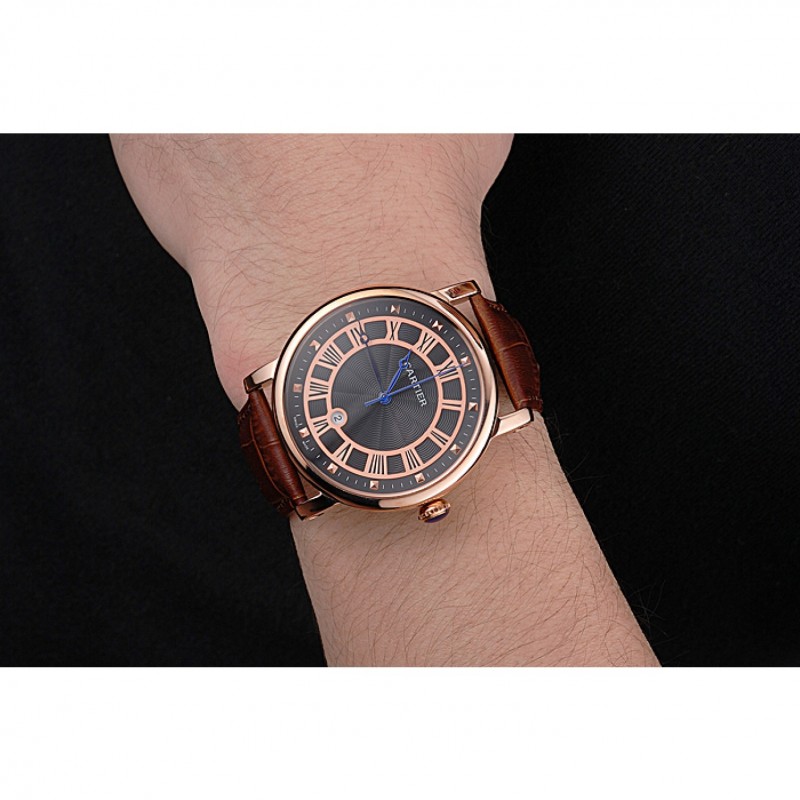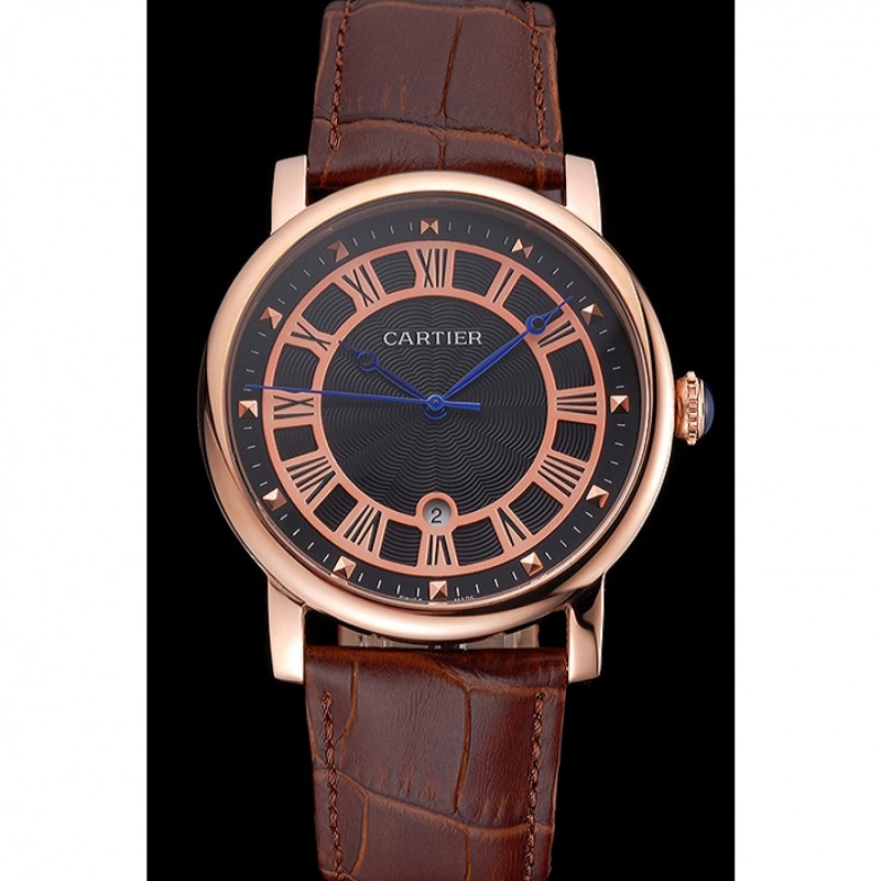 Bracelet:chaleur Cartier en relief crocodile brun bracelet en cuir avec 18k or rose plaqué fermoir crochet-boucle