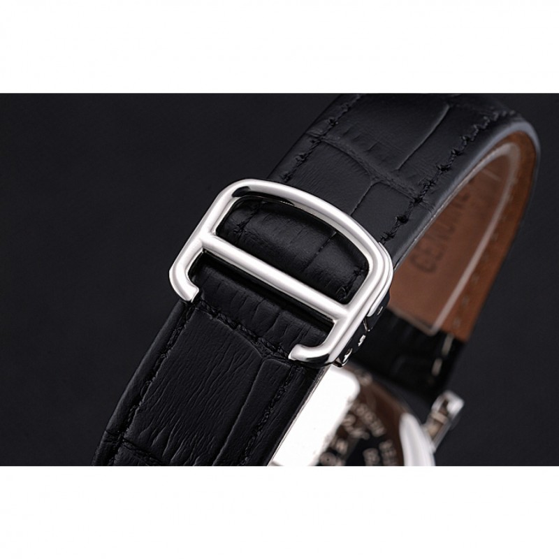 Bracelet:chaleur Cartier en relief bracelet en cuir crocodile noir avec fermoir à boucle rabattable en acier inoxydable poli