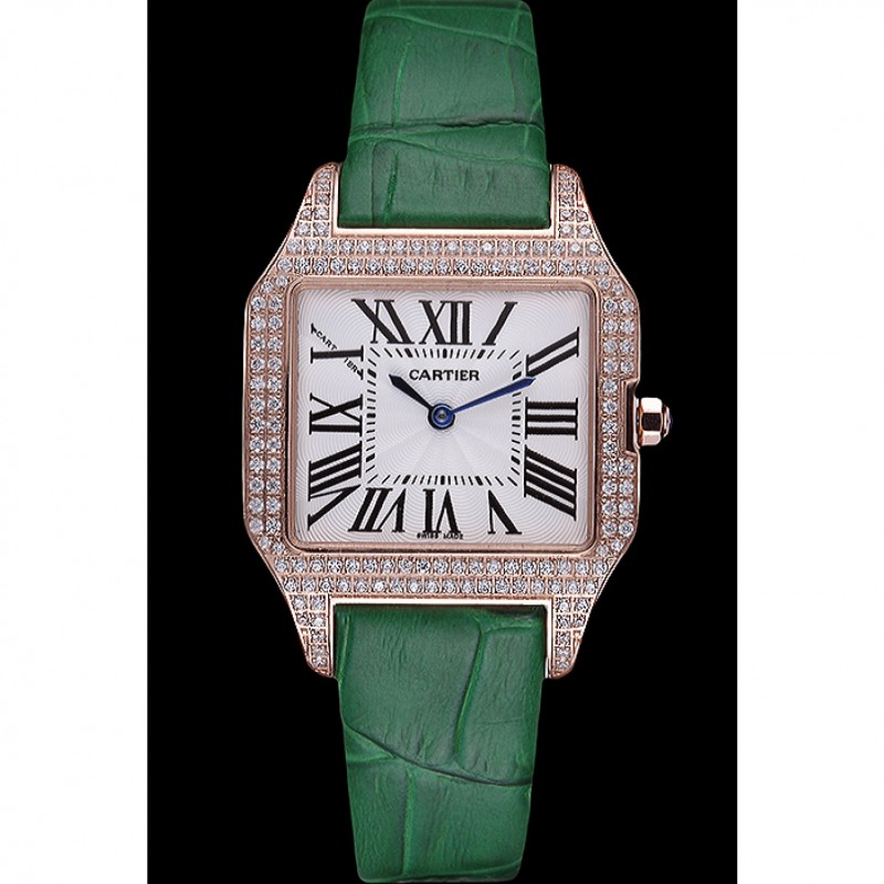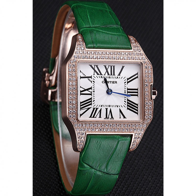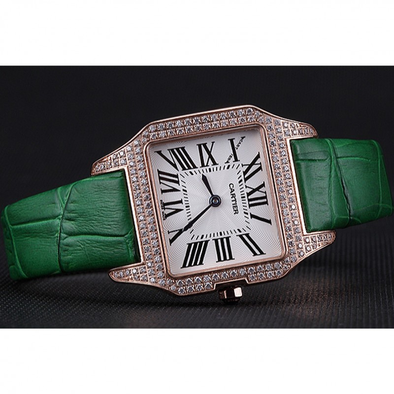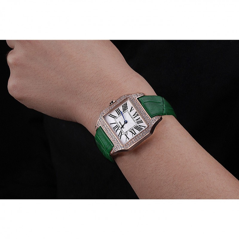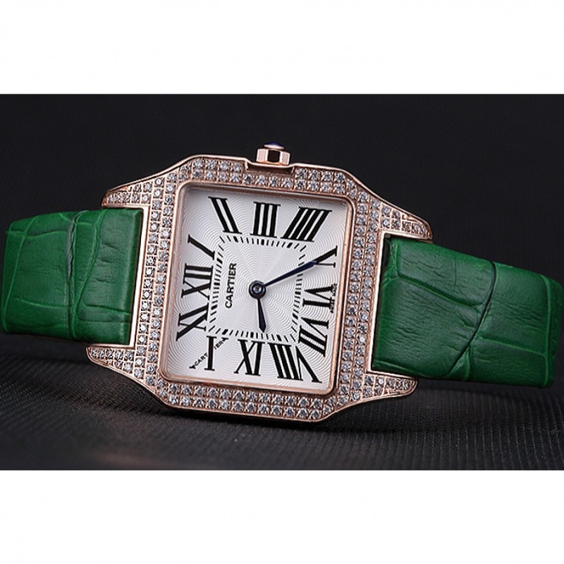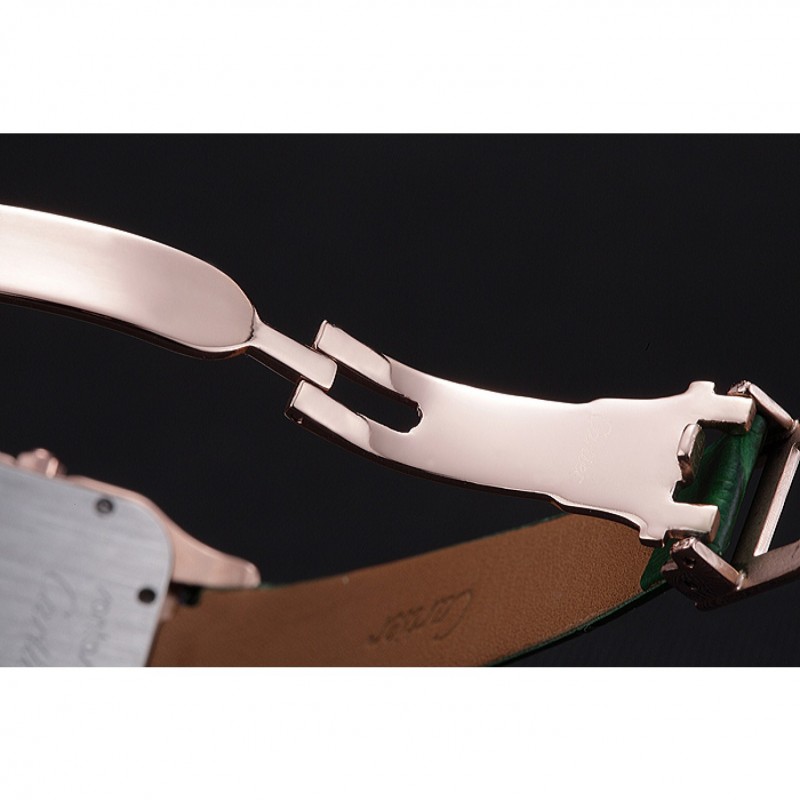 Bracelet:chaleur Cartier bracelet en cuir de crocodile vert gravé rose 18K-plaqué or rabattable en boucle