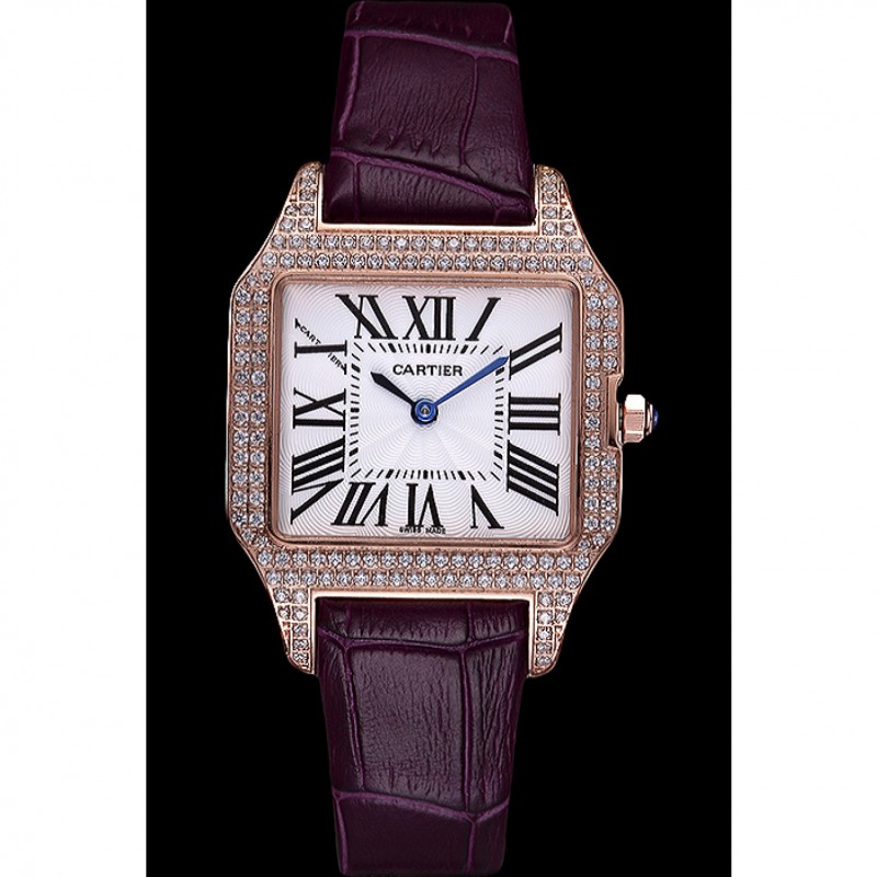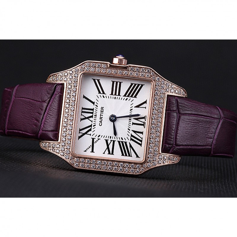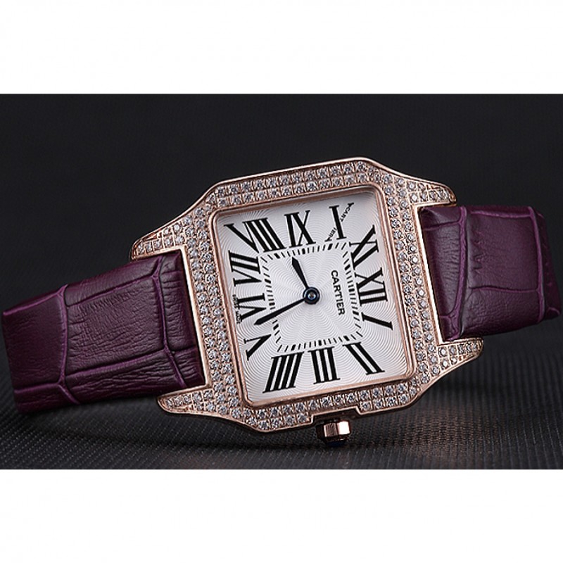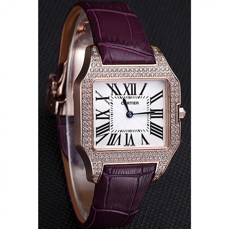 Bracelet:chaleur Cartier bracelet en cuir de crocodile violet gravé rose 18K-plaqué or rabattable en boucle