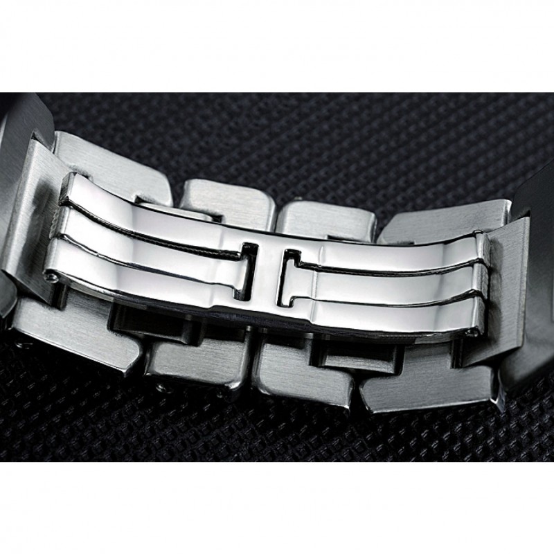 Couronne:goujon Sapphire couronne en acier inoxydable poli avec une couronne rectangulaire à bouton-poussoir sur chaque côté de celui-ci