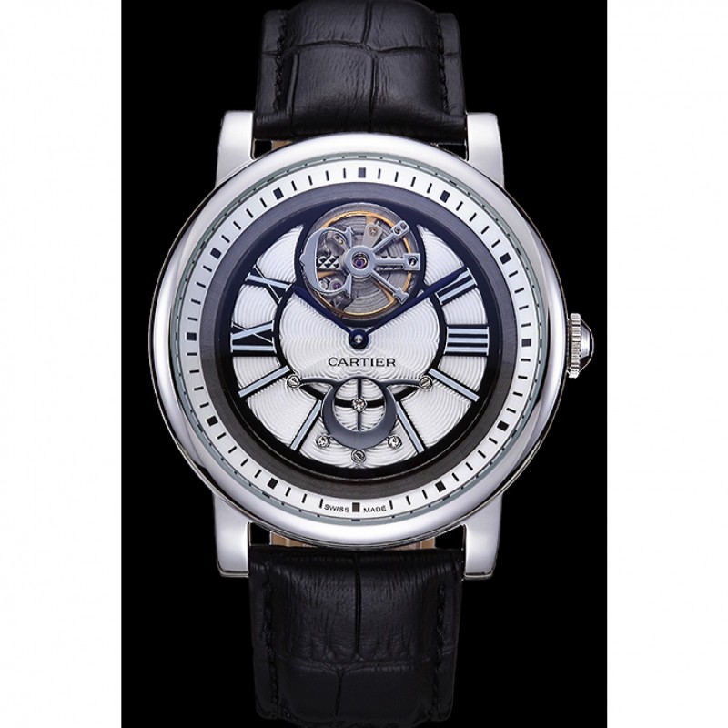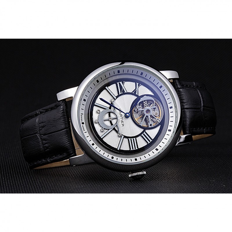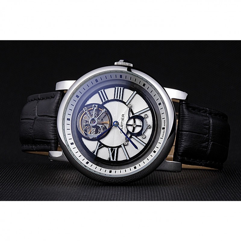 Retouracier inoxydable poli vissé en arrière avec la mécanique transparents centre révélateur et inscription Cartier