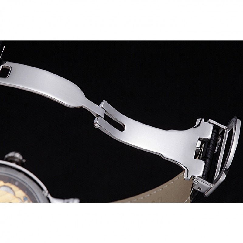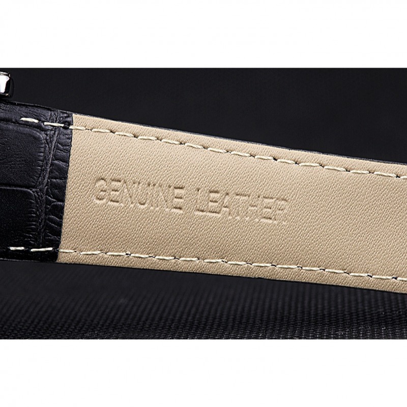 Bracelet:chaleur Cartier en relief bracelet en cuir crocodile noir avec pli en boucle en acier inoxydable poli
