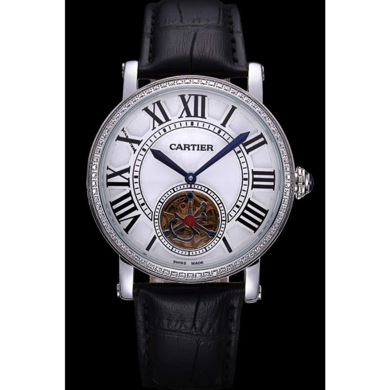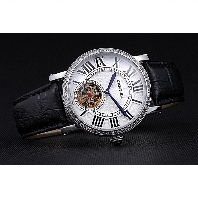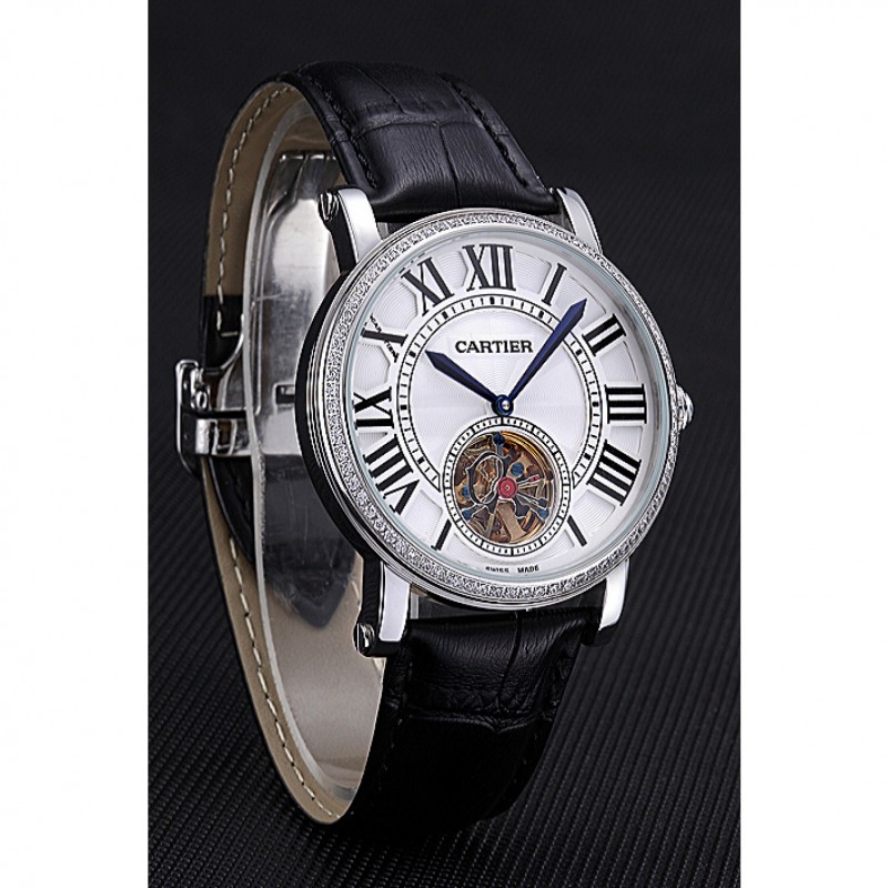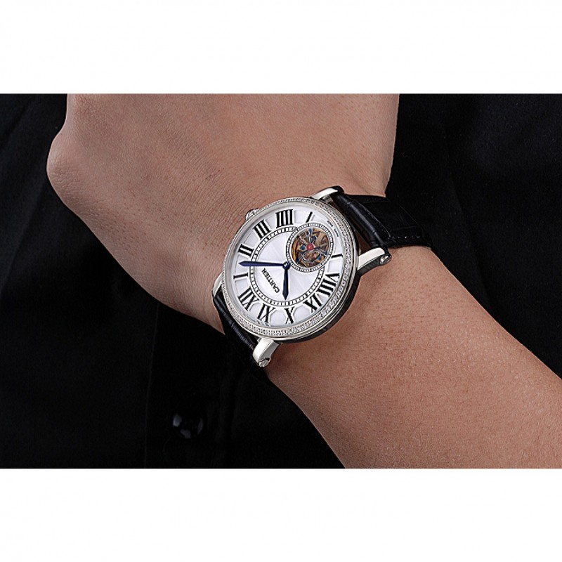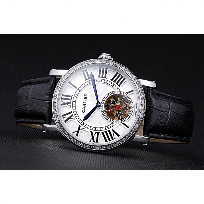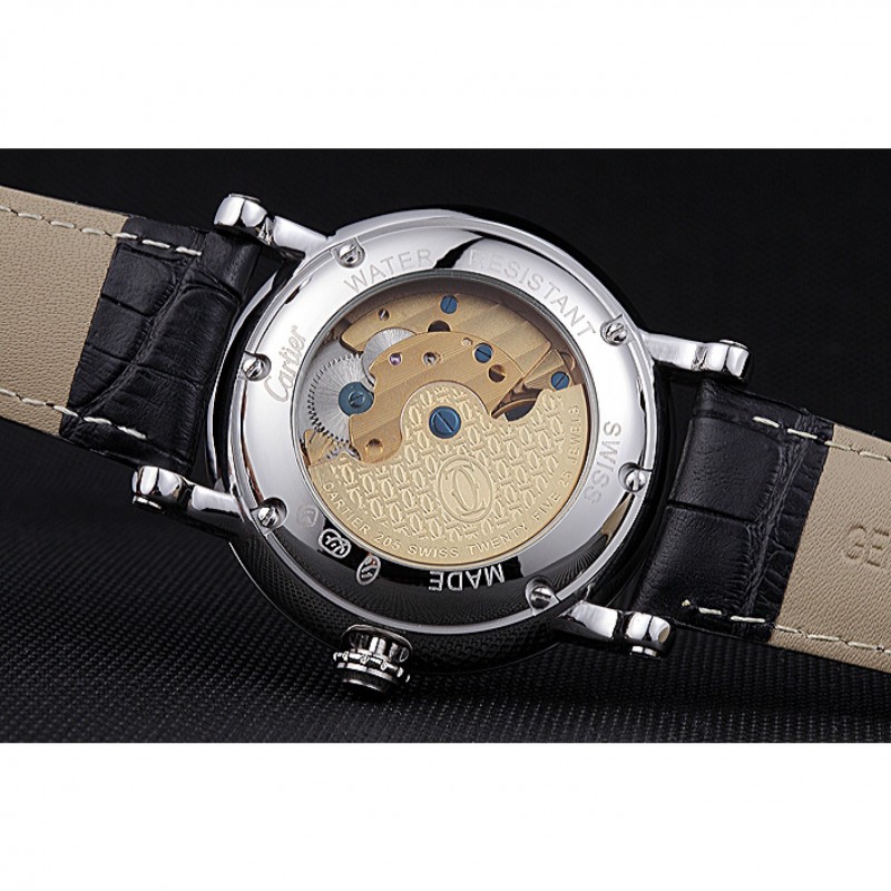 Retouracier inoxydable poli vissé en arrière avec la mécanique transparents centre révélateur et inscription Cartier