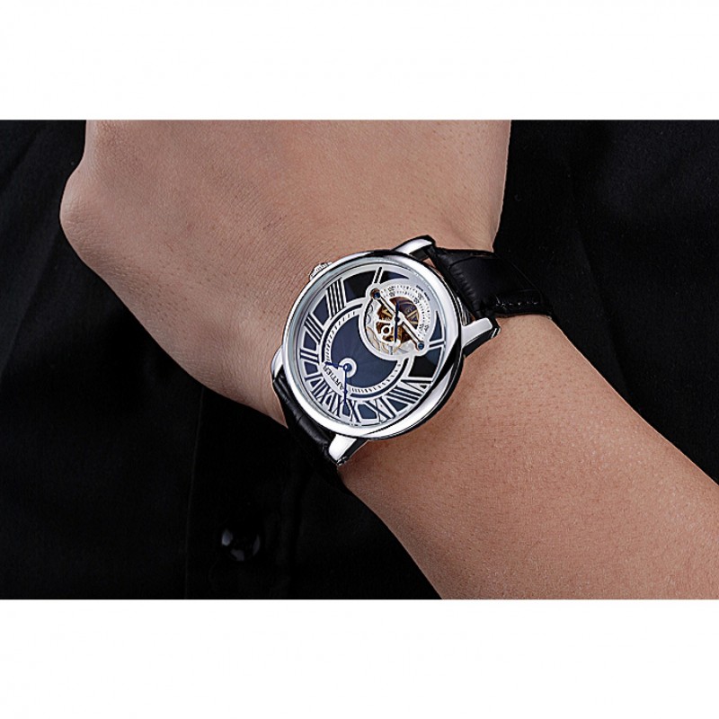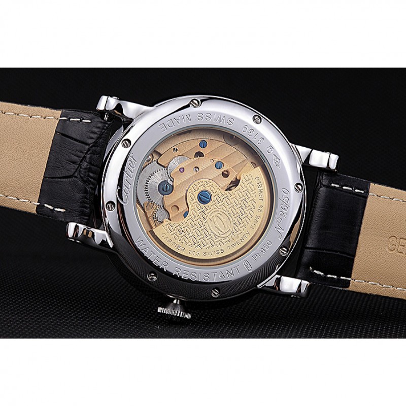 Retouracier inoxydable poli vissé en arrière avec la mécanique transparents centre révélateur et inscription Cartier