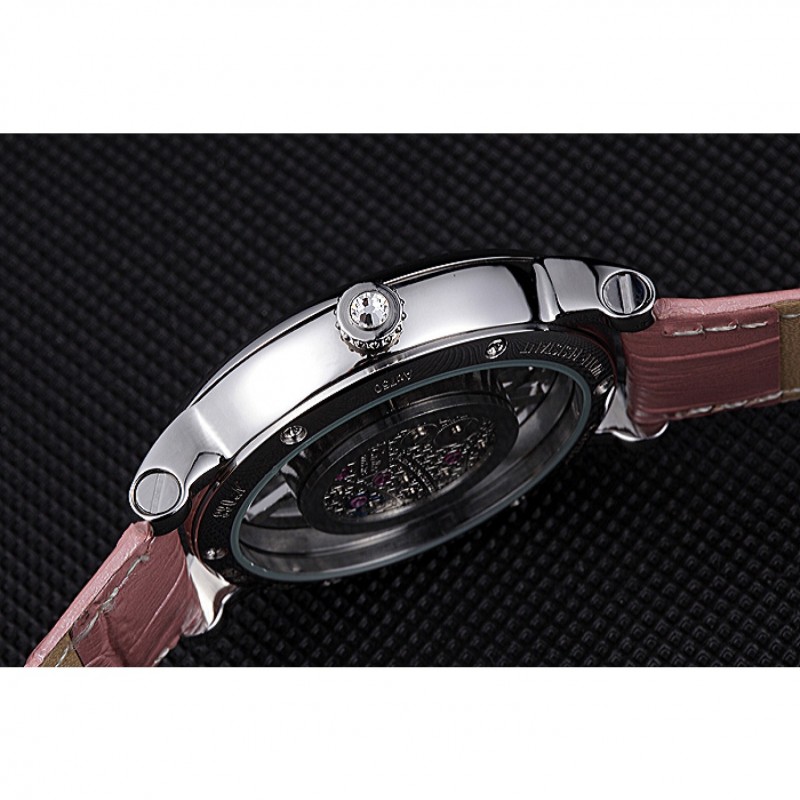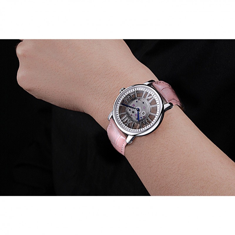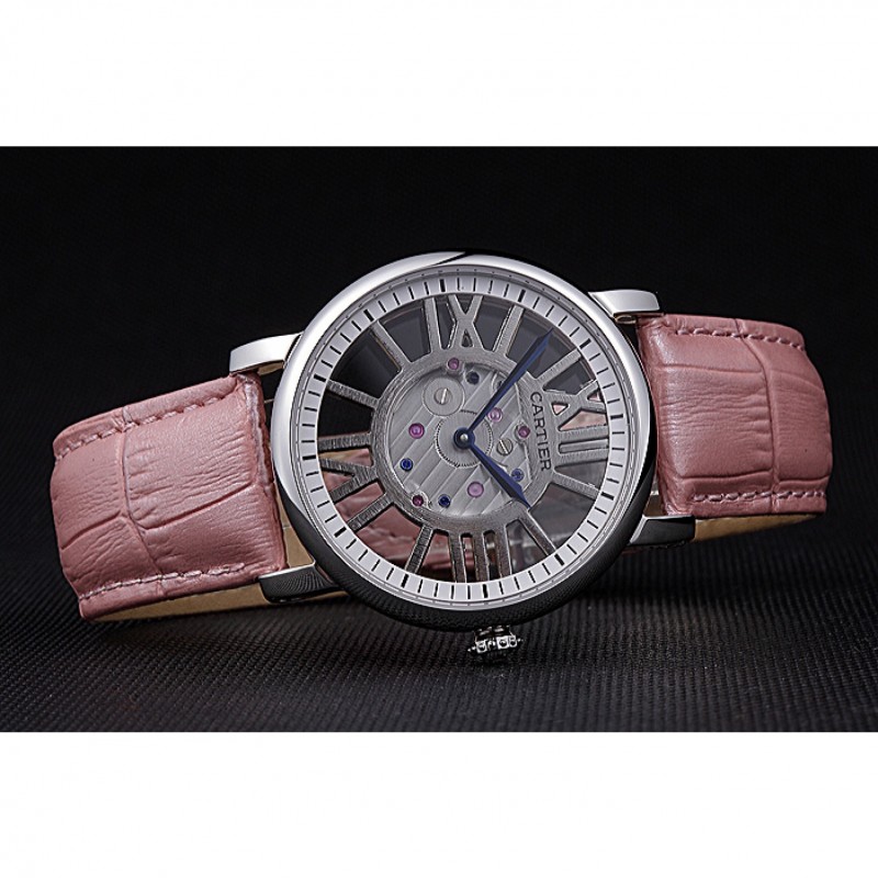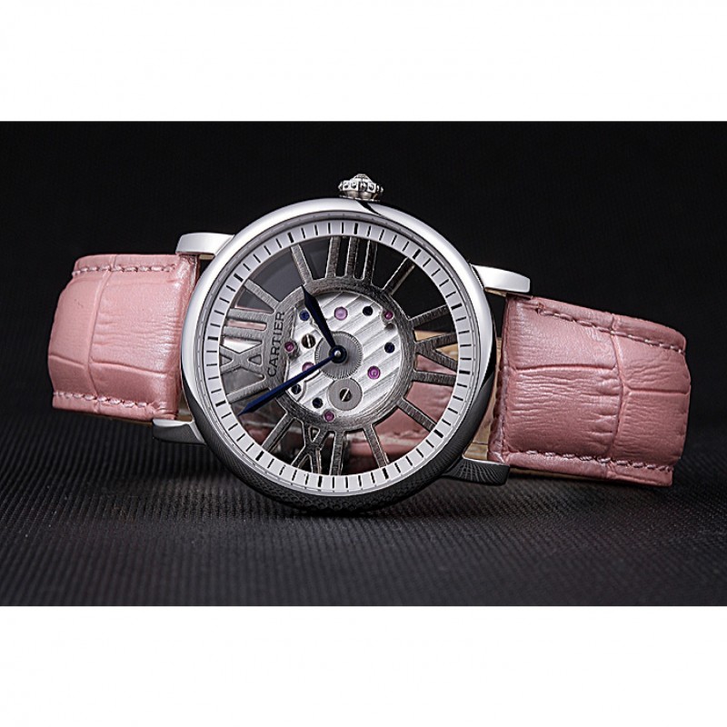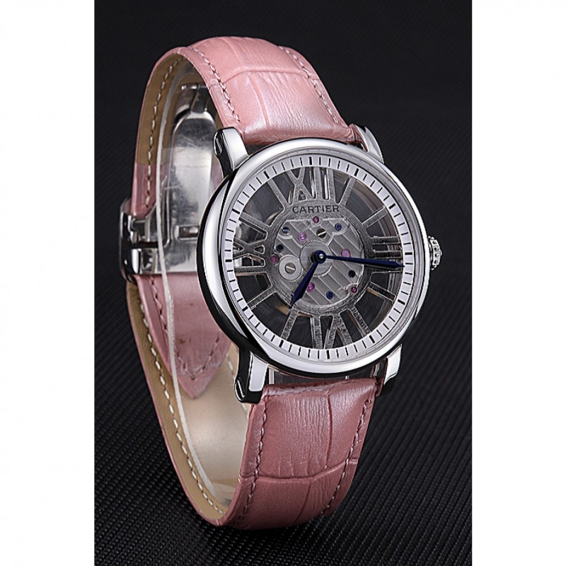 Bracelet:chaleur Cartier gaufré lumière crocodile rose bracelet en cuir avec pliage en boucle en acier inoxydable poli