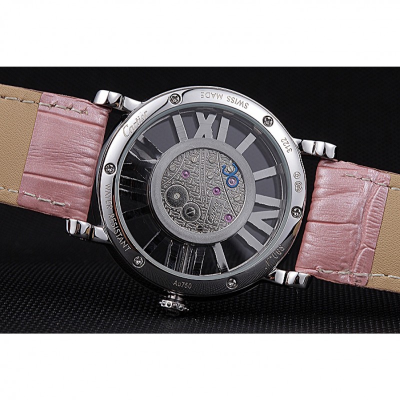 Retouracier inoxydable poli vissé en arrière avec la mécanique transparents centre révélateur et inscription Cartier