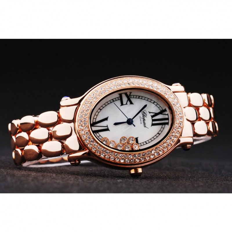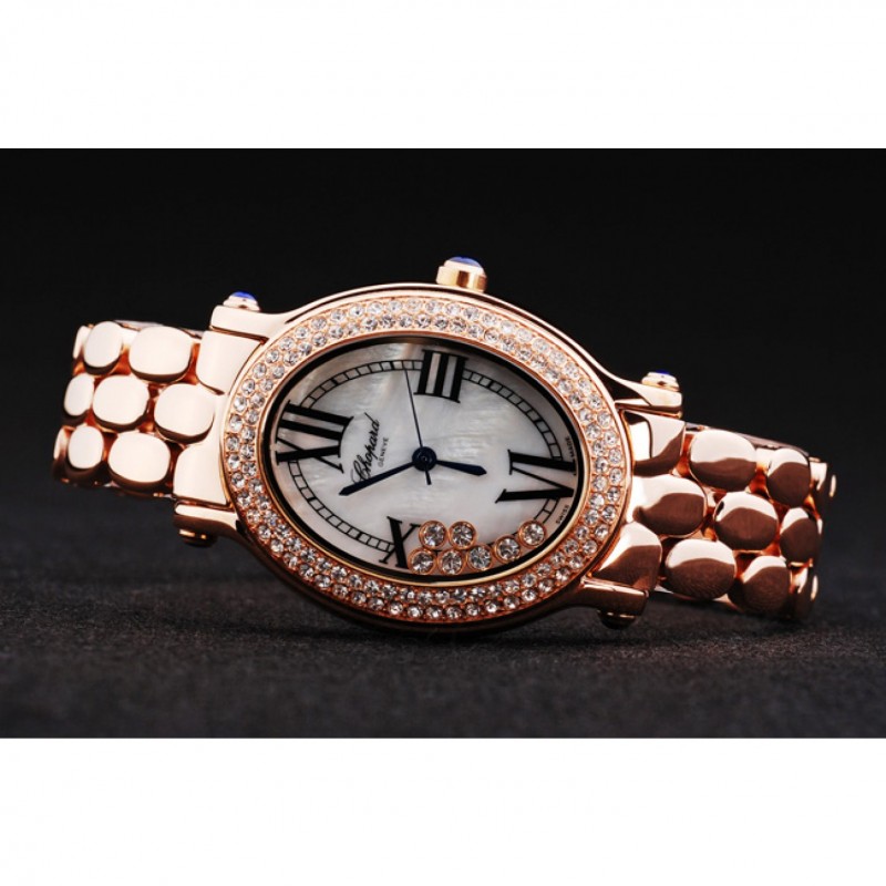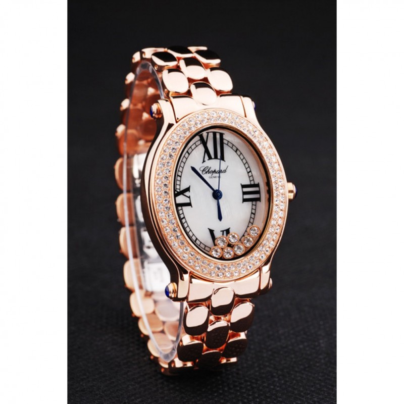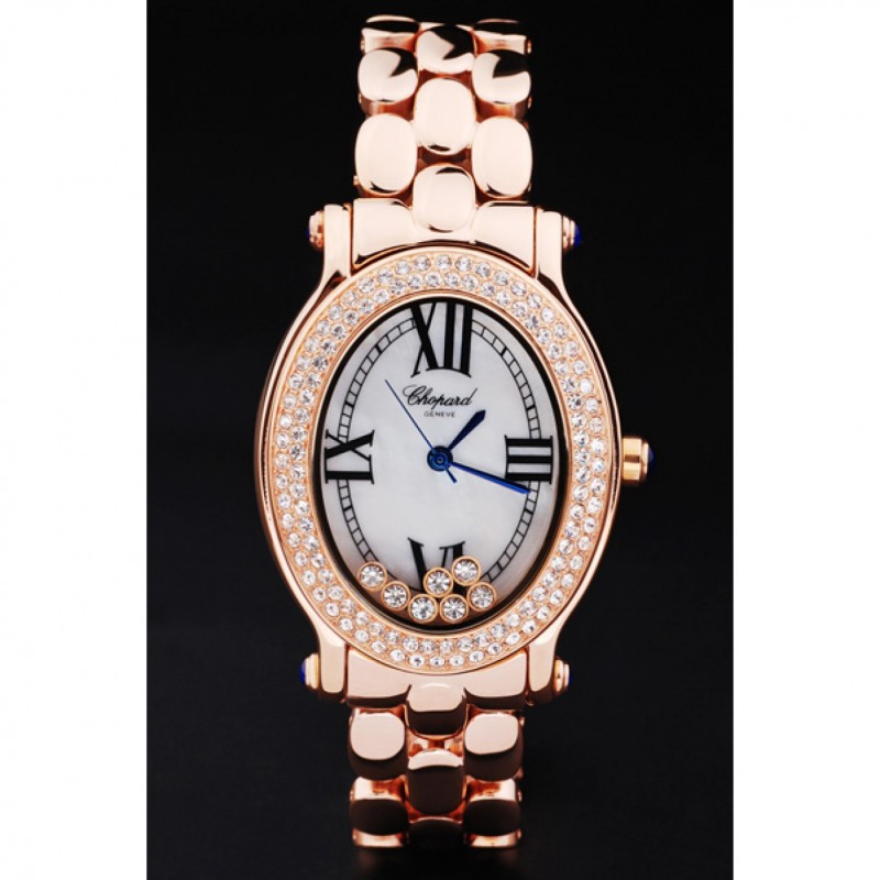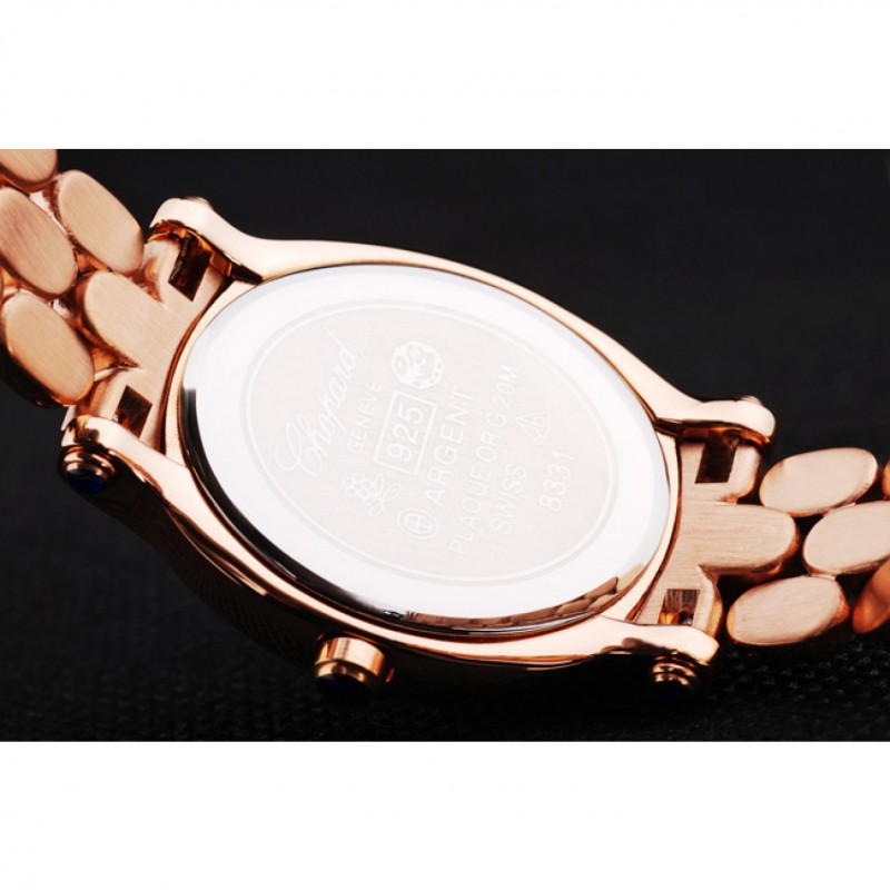 Description:.Avec luxueux et amusant flottant faux diamants, cette montre réplique Chopard en or tons rose est tout à fait authentique et magnifique