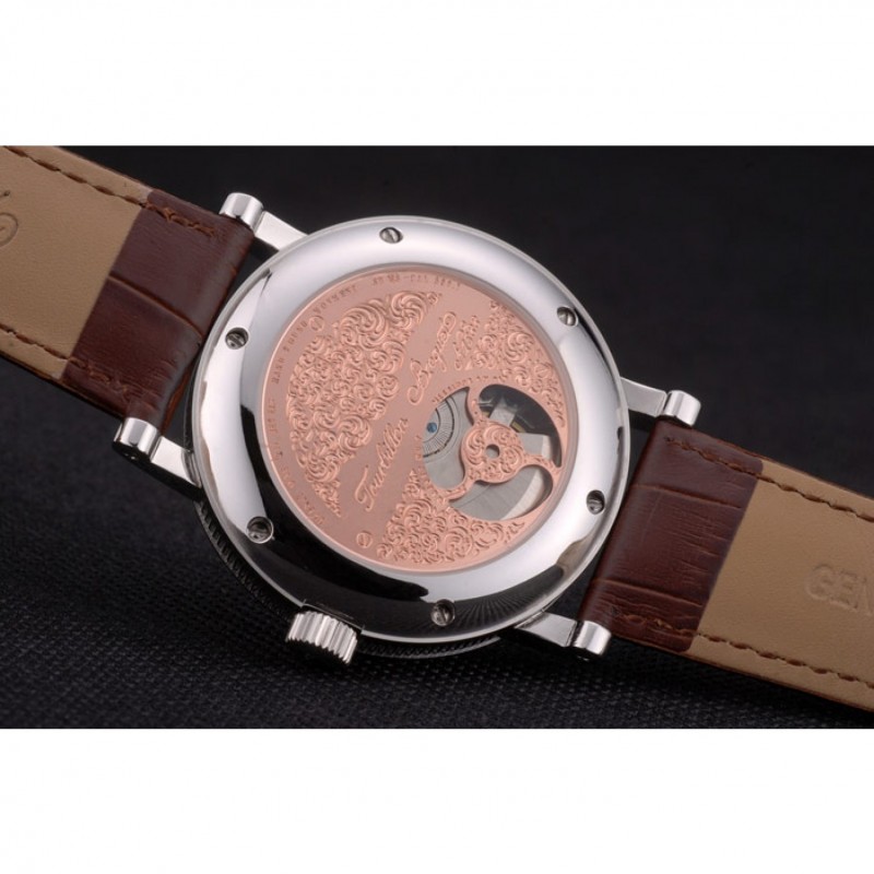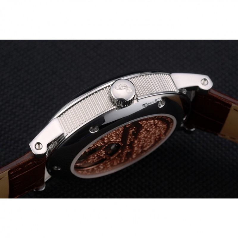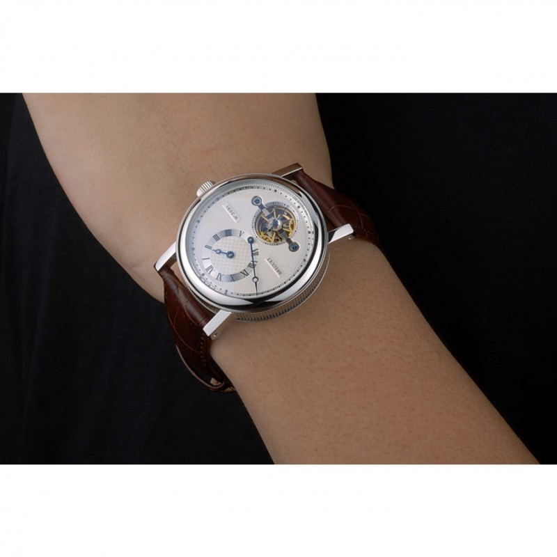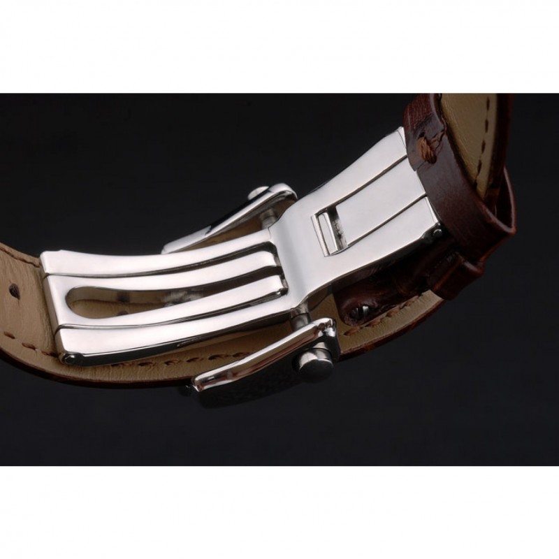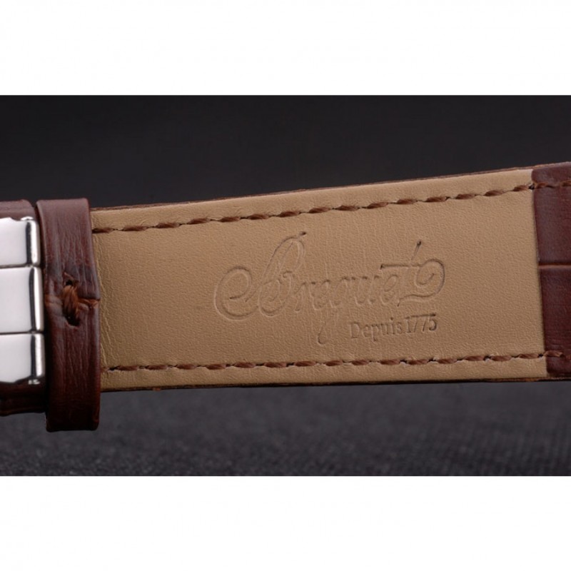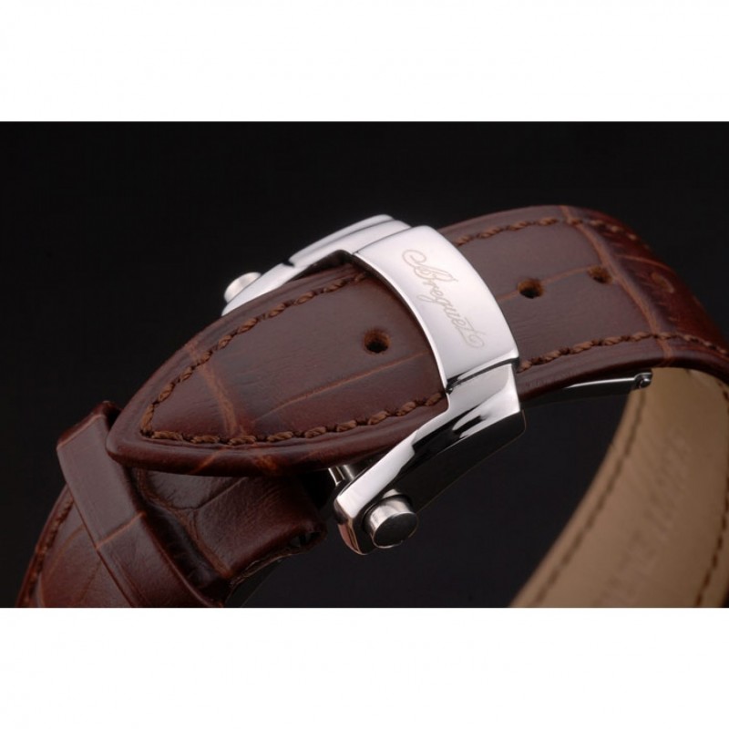 Bracelet:Breguet chaleur bracelet en cuir de crocodile brun relief avec Brequet gravé fermoir pliant en acier inoxydable poli-boucle de crochet