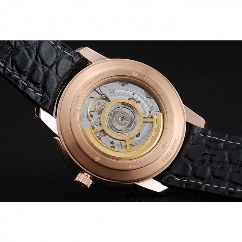 Retour18k rose plaqué or enfichable à l’arrière avec des gravures Vacheron Constantin et mécanique révélant transparente centre