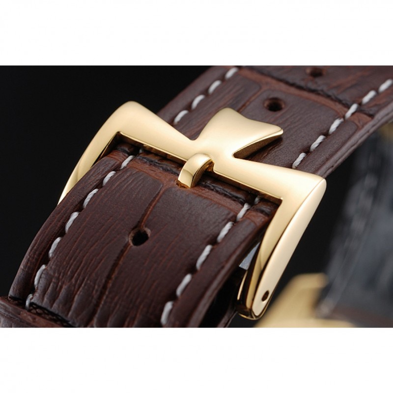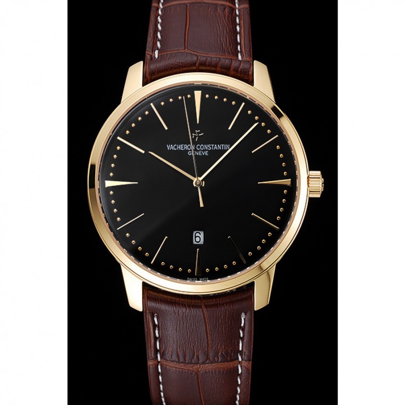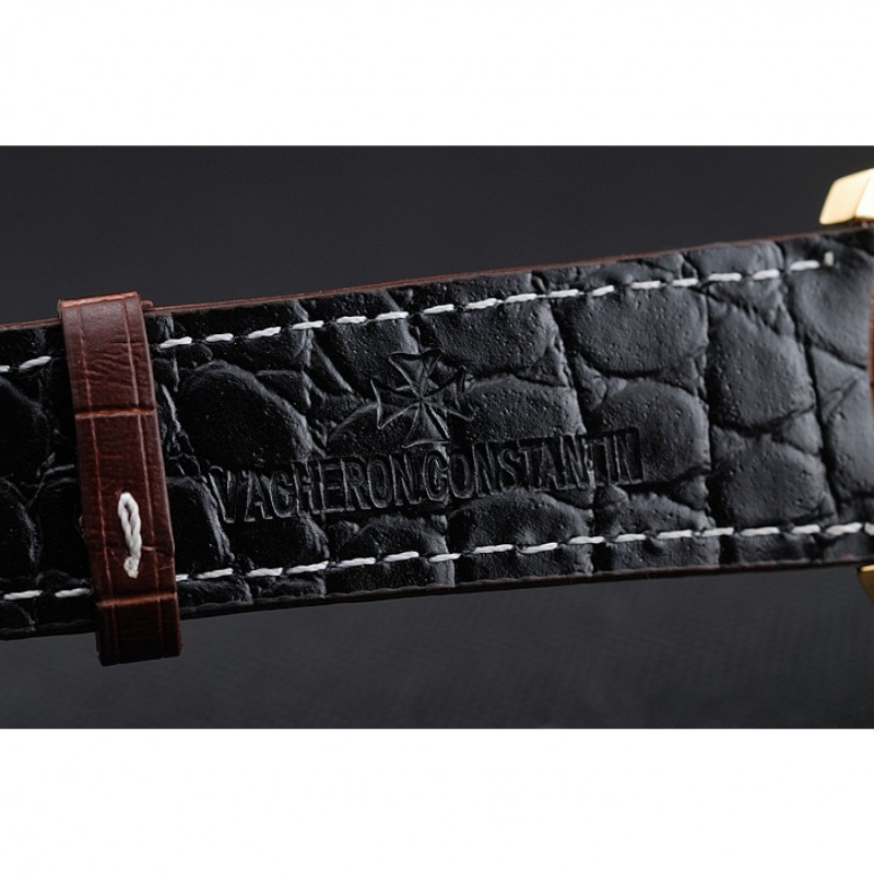 Bracelet:Vacheron Constantin et la chaleur de logo en relief crocodile noir bracelet en cuir avec des coutures de fil blanc et Vacheron Constantin logo sculpté 18k crochet plaqué or jaune fermoir -buckle