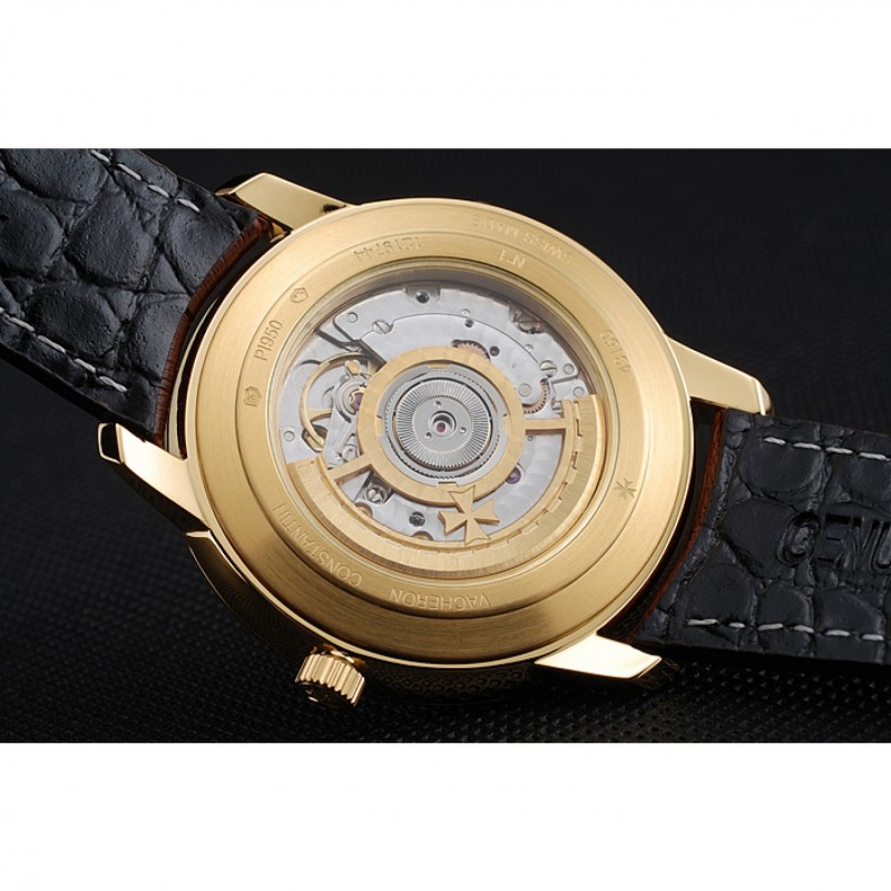 Retour:18k plaqué or jaune composant logiciel enfichable retour avec gravures Vacheron Constantin et mécanique révélant transparente centre