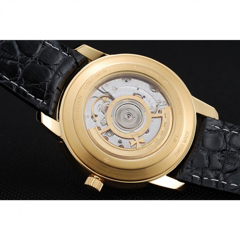 Retour:18k plaqué or jaune composant logiciel enfichable retour avec gravures Vacheron Constantin et mécanique révélant transparente centre