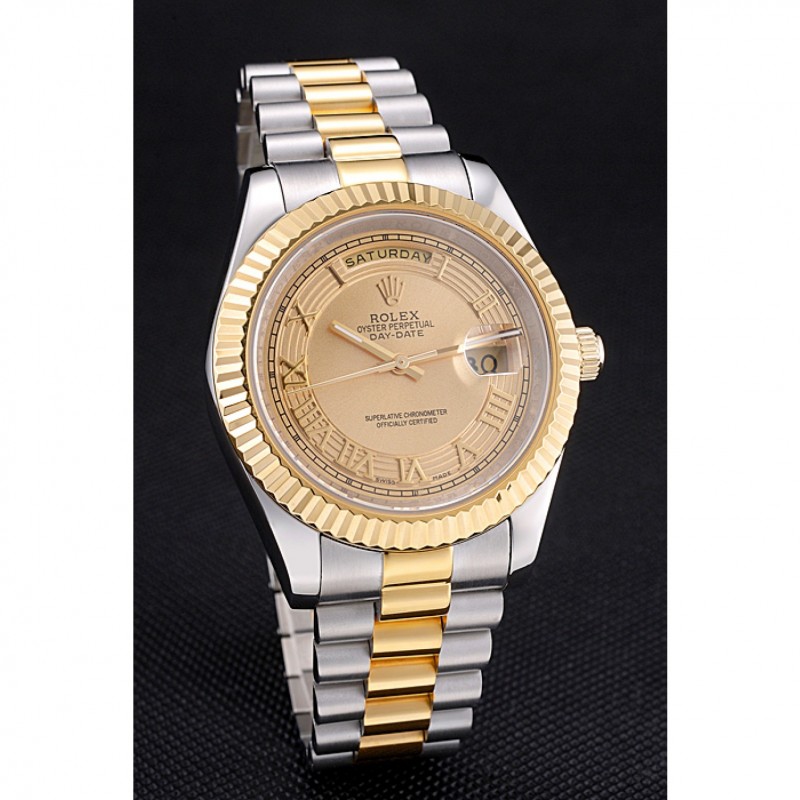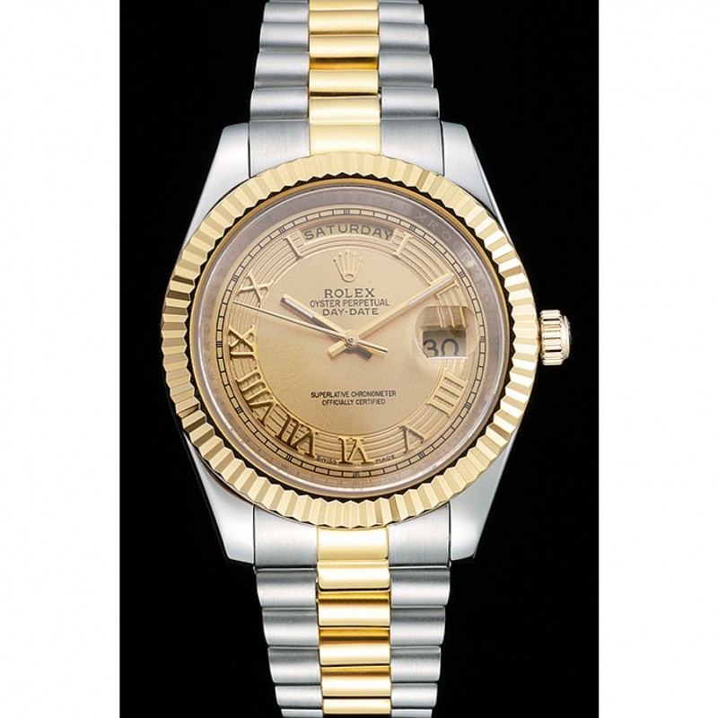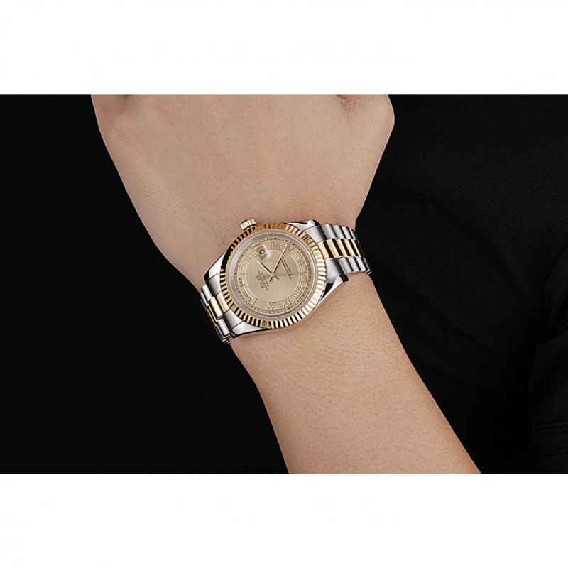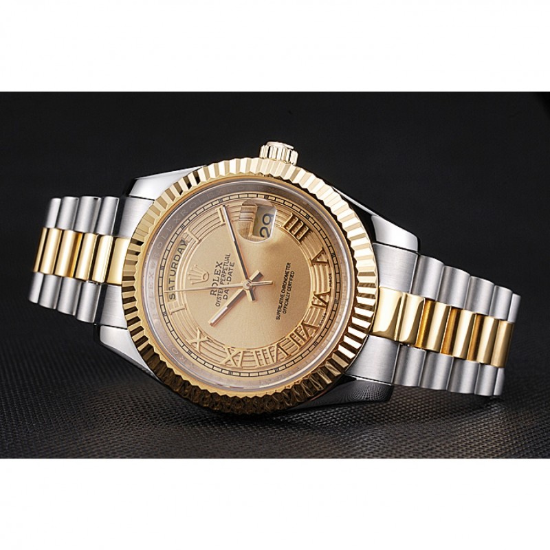 Couronne:18k plaqué or jaune couronne en acier inoxydable cutwork avec le logo Rolex