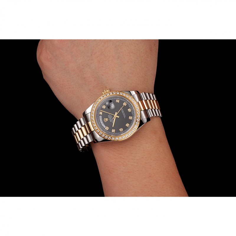 Bracelet:en acier inoxydable brossé acier et or jaune 18 carats plaqué bracelet lien avec plaqué or jaune logo Rolex gravé fermoir caché
