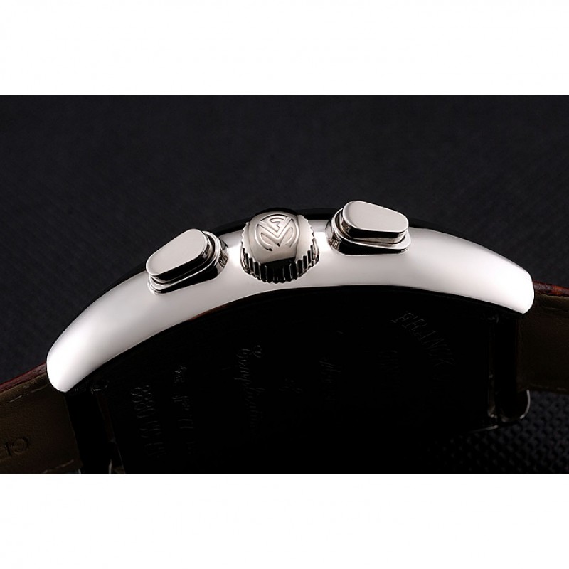 Couronne:acier inoxydable poli logo Franck Muller gravé couronne cutwork avec des couronnes à bouton-poussoir oblongs de chaque côté de celui-ci