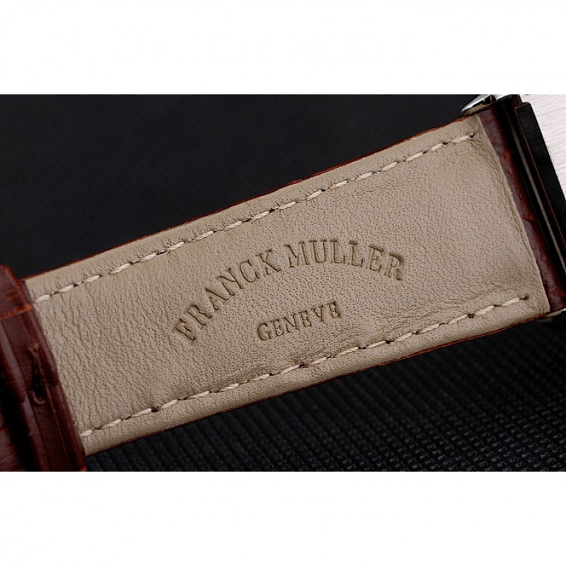 Bracelet:Franck Muller Geneve chaleur bracelet en cuir de crocodile brun gaufré avec un Franck Muller gravé en acier inoxydable poli fermoir crochet-boucle