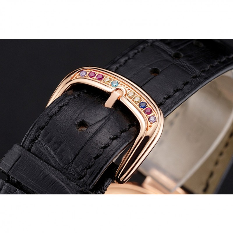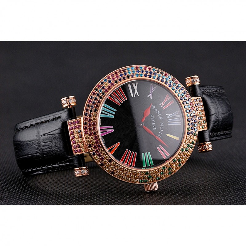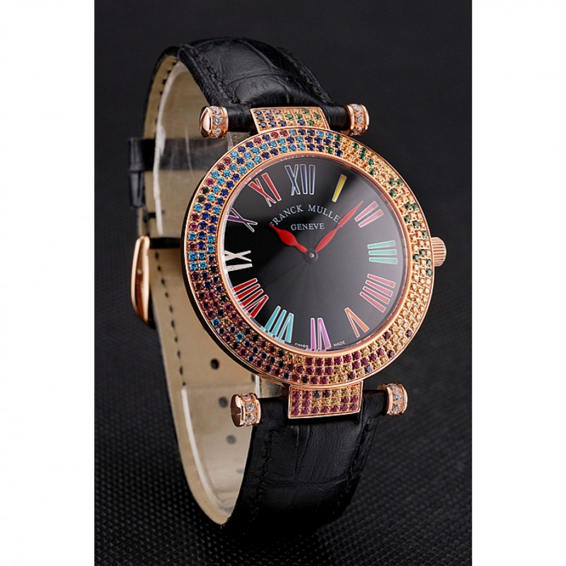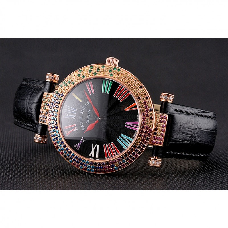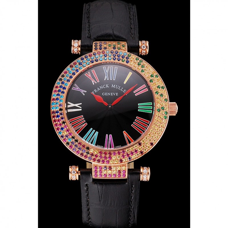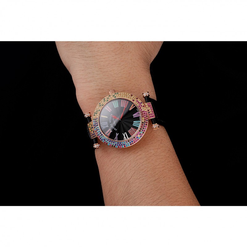 Bracelet:Franck Muller Geneve chaleur bracelet en cuir crocodile noir en relief avec 18k incrustée de cristal multicolore rose plaqué or fermoir crochet-boucle